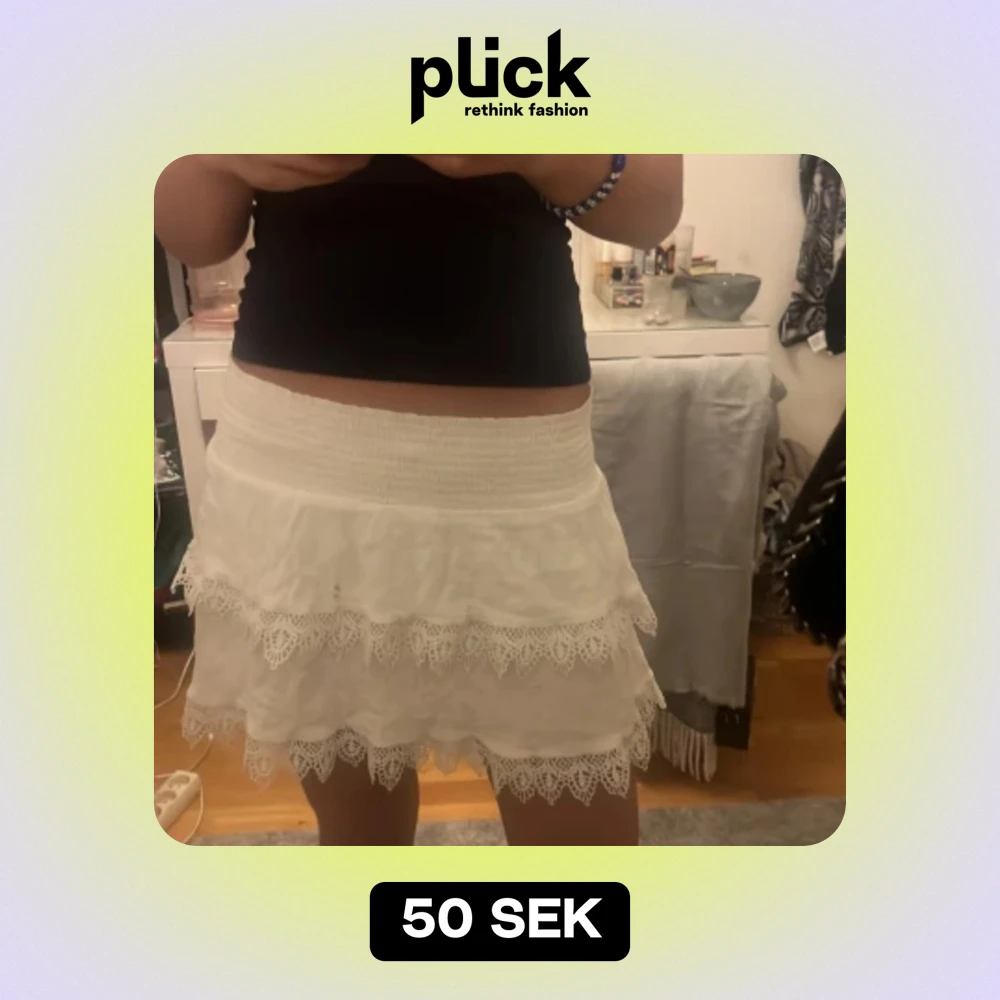 En vit gullig volang kjol med lite mönster på volangerna Bra skick