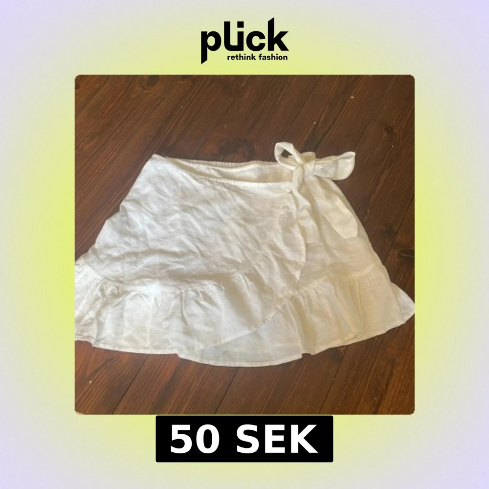 Supersöt vit omlottkjol från Stradivarius i storlek XS. Kjolen har volangkant och knytband i midjan! Den är aldrig använd utan bara provad!💕