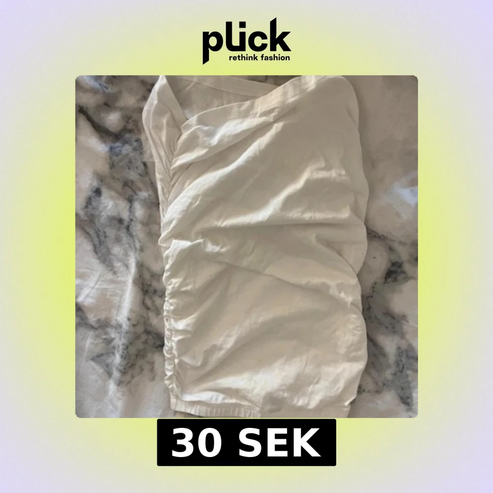 Säljer en stilren vit omlottklänning med en elegant drapering. Perfekt för sommarens alla tillfällen. Klänningen har en v-ringad design och är tillverkad i ett mjukt material som ger en skön passform. (Bilden är uppochner så den ser inte ut så hahah)