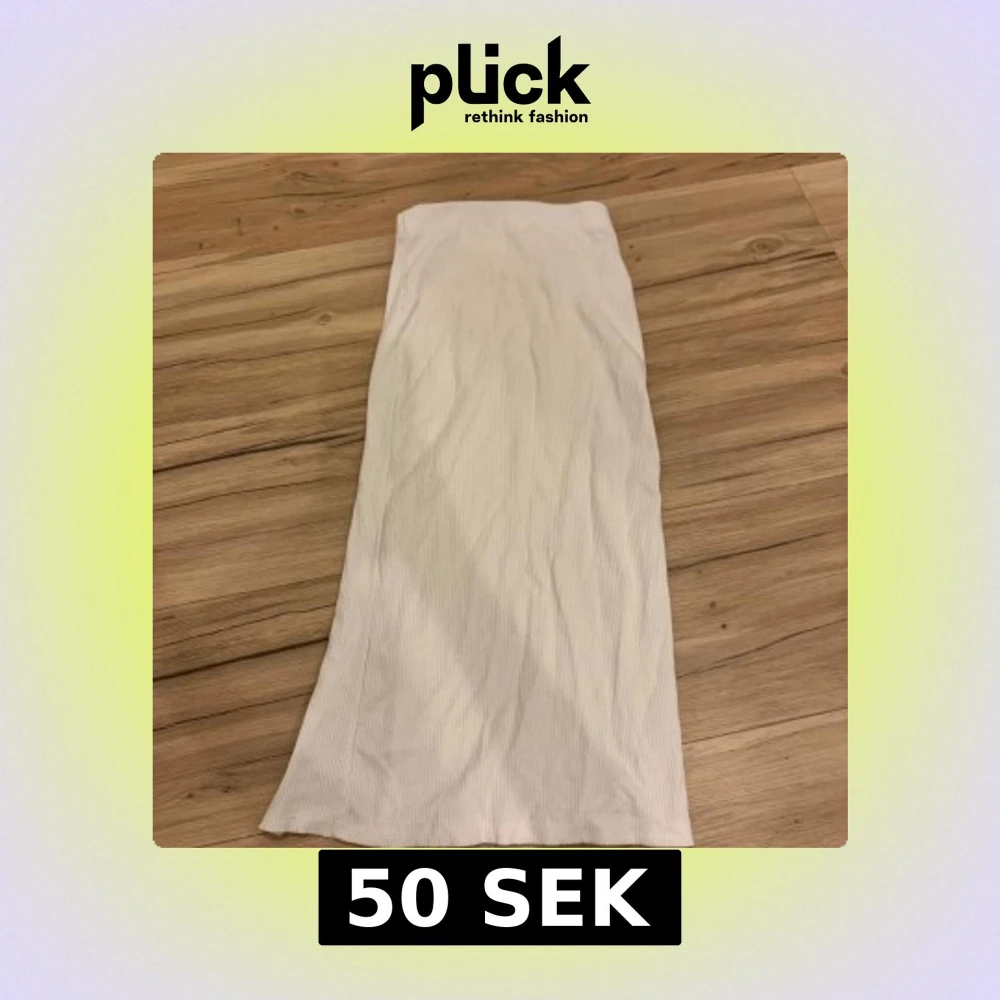 Säljer en stilren vit ribbad kjol i lång modell. Perfekt för en minimalistisk look.