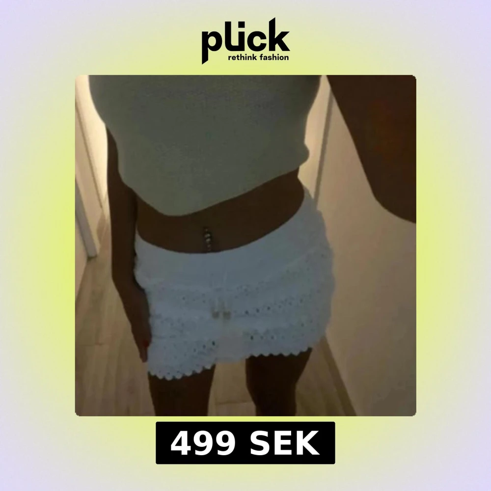 Supersöt vit kortkjol i spets med broderade detaljer och volangkant. Kjolen har elastisk midja och snörning framtill för extra snygg passform. Perfekt för sommarens alla tillfällen och ger en fräsch vibe till din outfit.