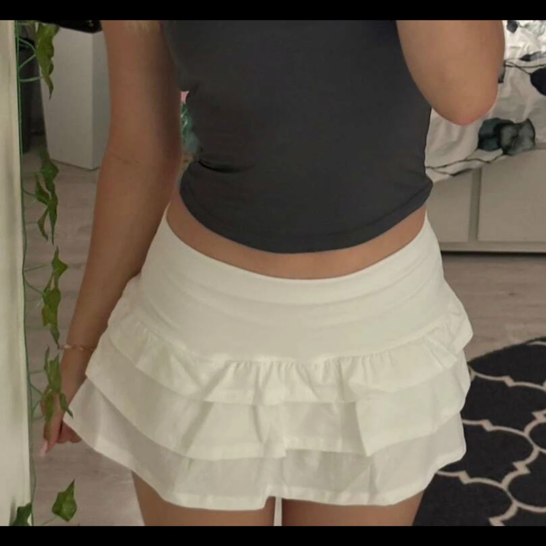 Superfin vit kortkjol med volanger och inbyggda shorts. Använd en gång