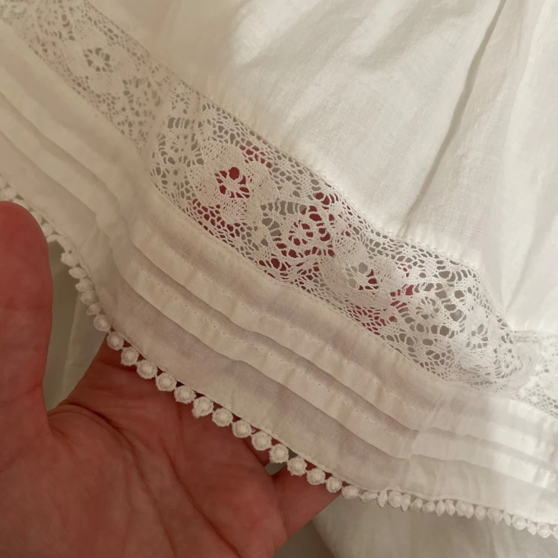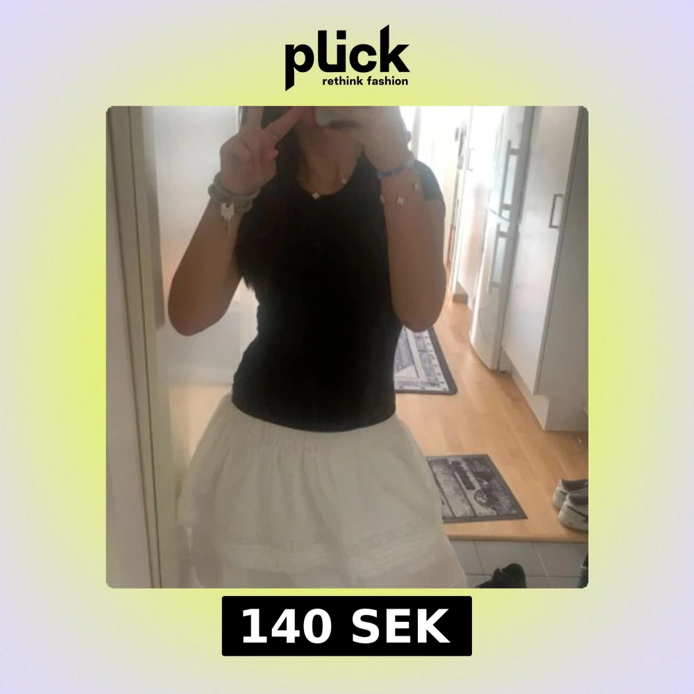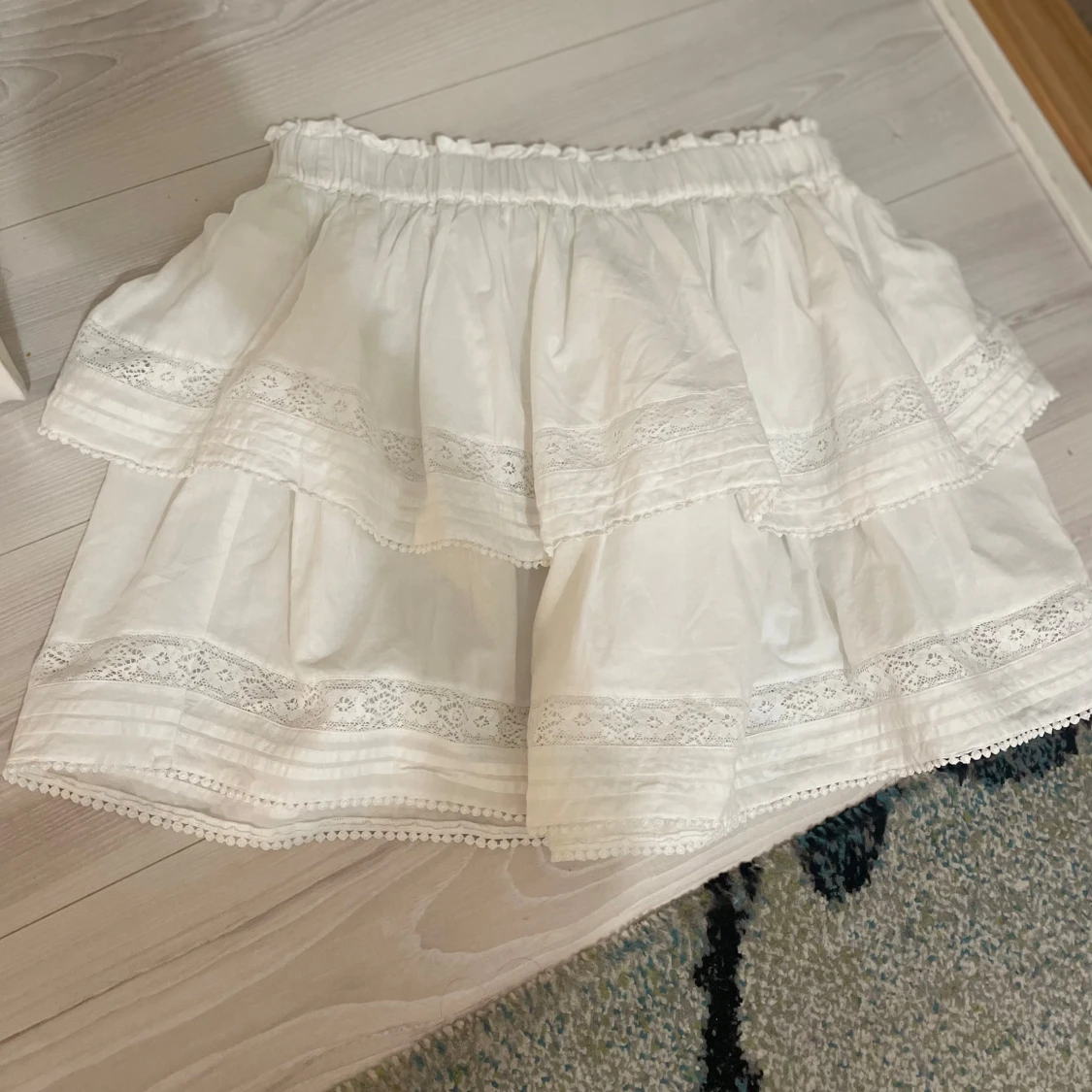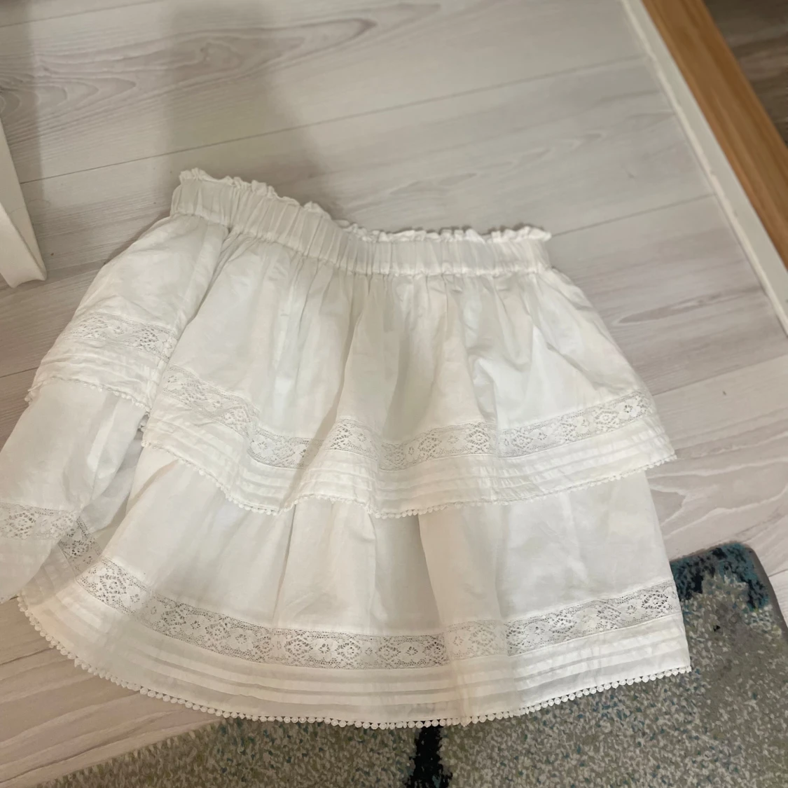 Vit kortkjol från BikBok med flera lager volanger och spetsdetaljer. Jag hade tjolen som lågmidjad i bilden men den är gjort för att vara lagom. Använt kanske 4-5 gånger.