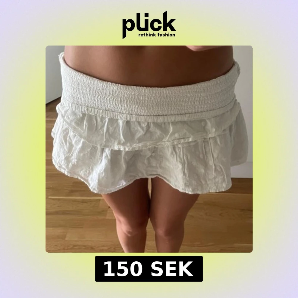 Supersöt vit kortkjol från Gina Tricot med bred smock i midjan och volanger. Kjolen har diskret prickigt mönster och är gjord i ett lätt och luftigt bomullstyg. Perfekt för en fräsch och somrig look! Den går att ha på olika sätt jag föredrar att ha kanten ner vikt men det går precis lika bra att ha den helt som vanligt! Strl 146-152 men väldigt stretchigt material så passar iprincip alla.