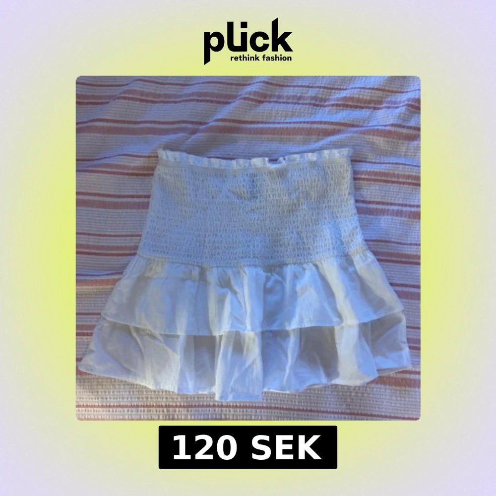 Supersöt vit kortkjol från H&M Divided i storlek XXS. Kjolen har smockad midja och dubbla volanger som ger en luftig och somrig känsla. Perfekt för dig som gillar en feminin och trendig stil.