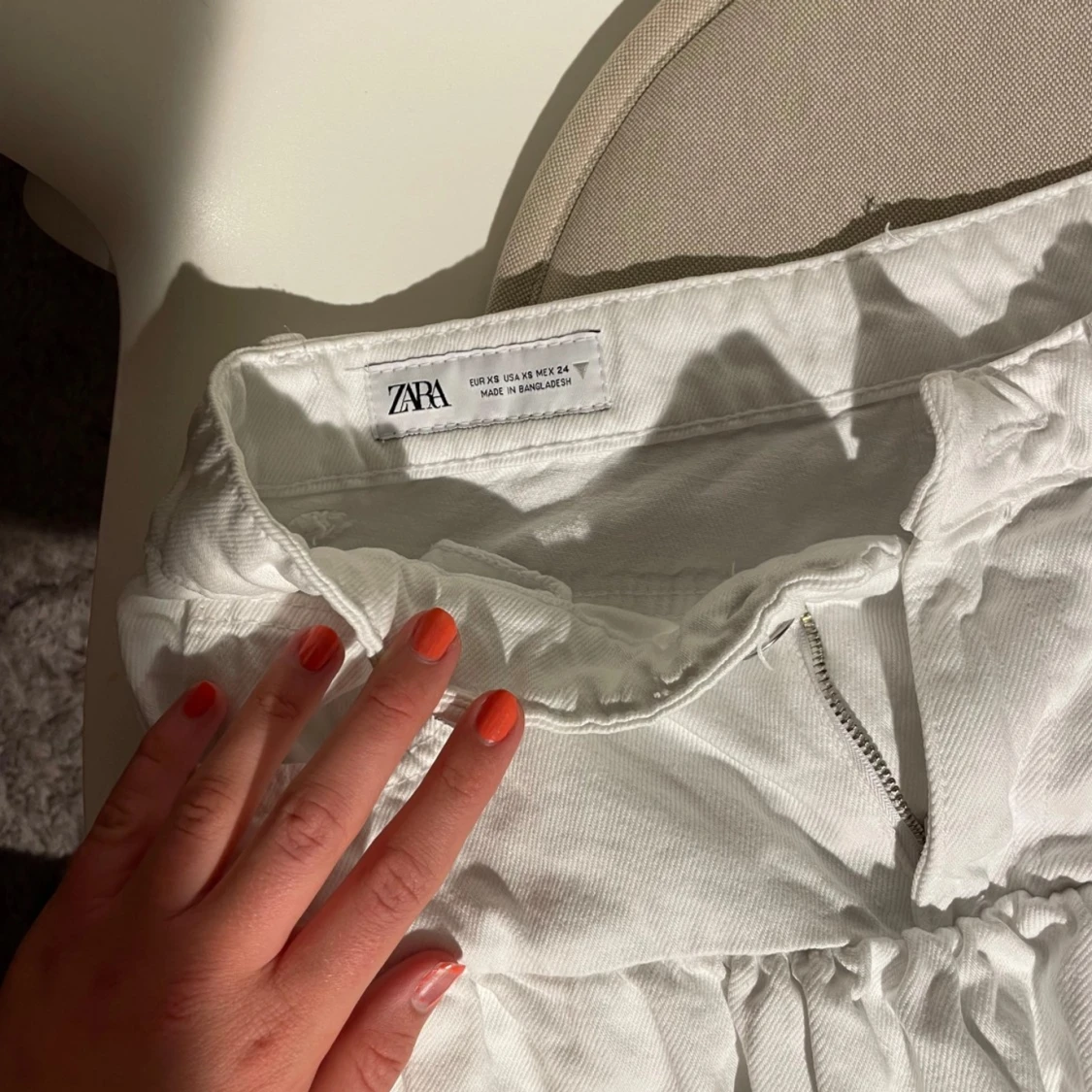 Supersöt vit kortkjol från Zara med volang och jeanslook. 🤍🤍