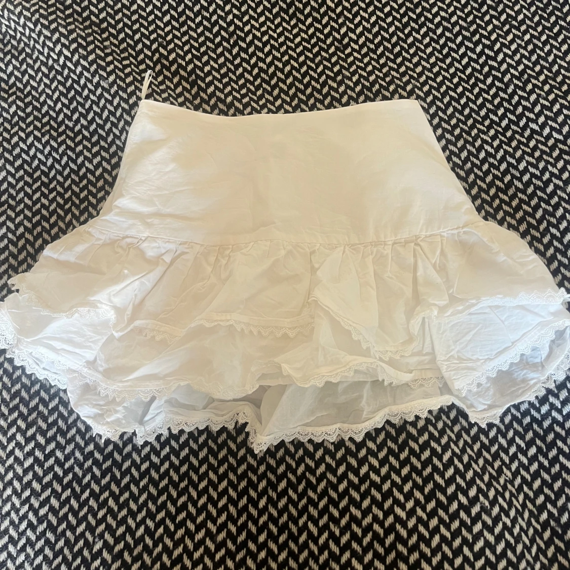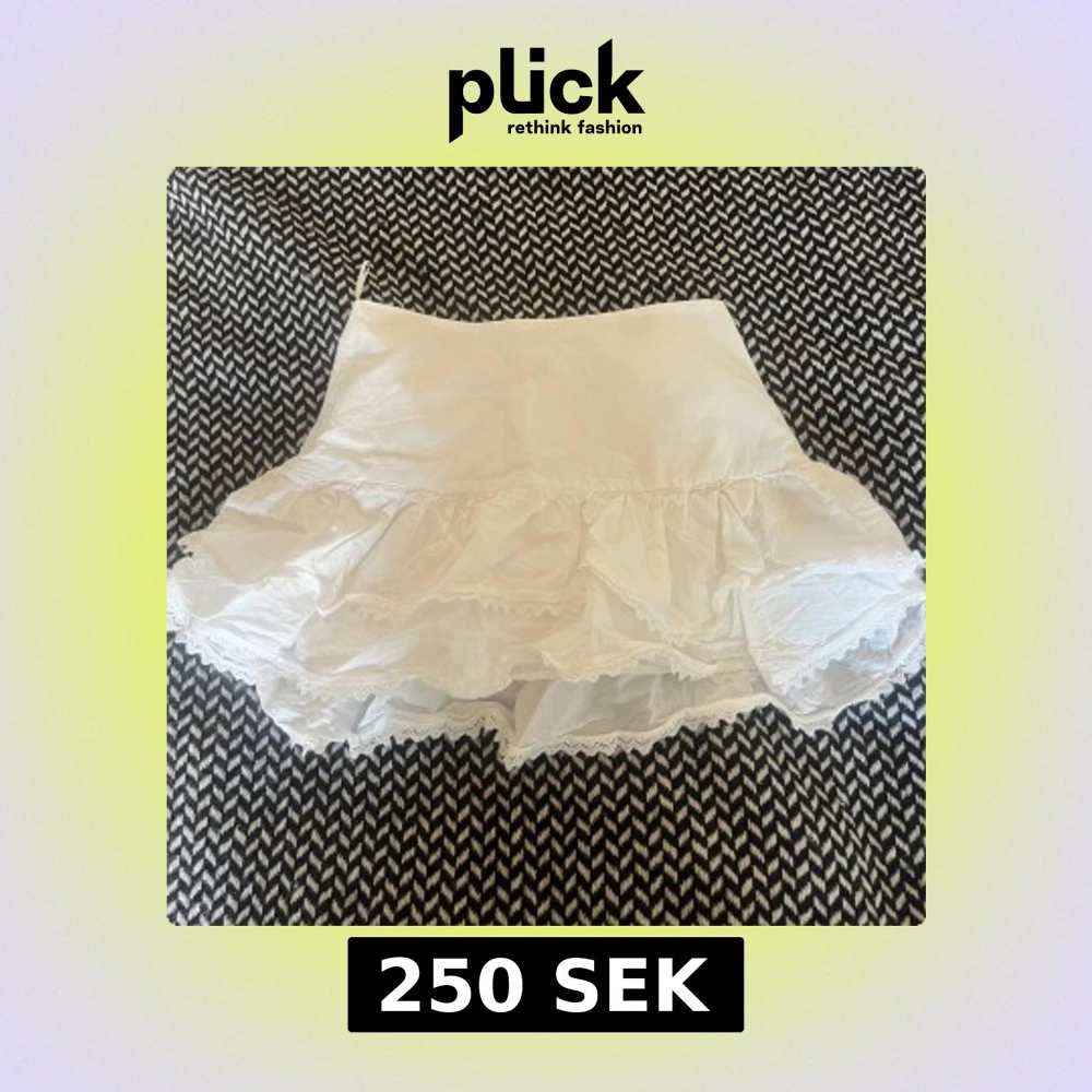 Supersöt vit kortkjol från Zara med volanger och spetsdetaljer längs kanten💞💞
