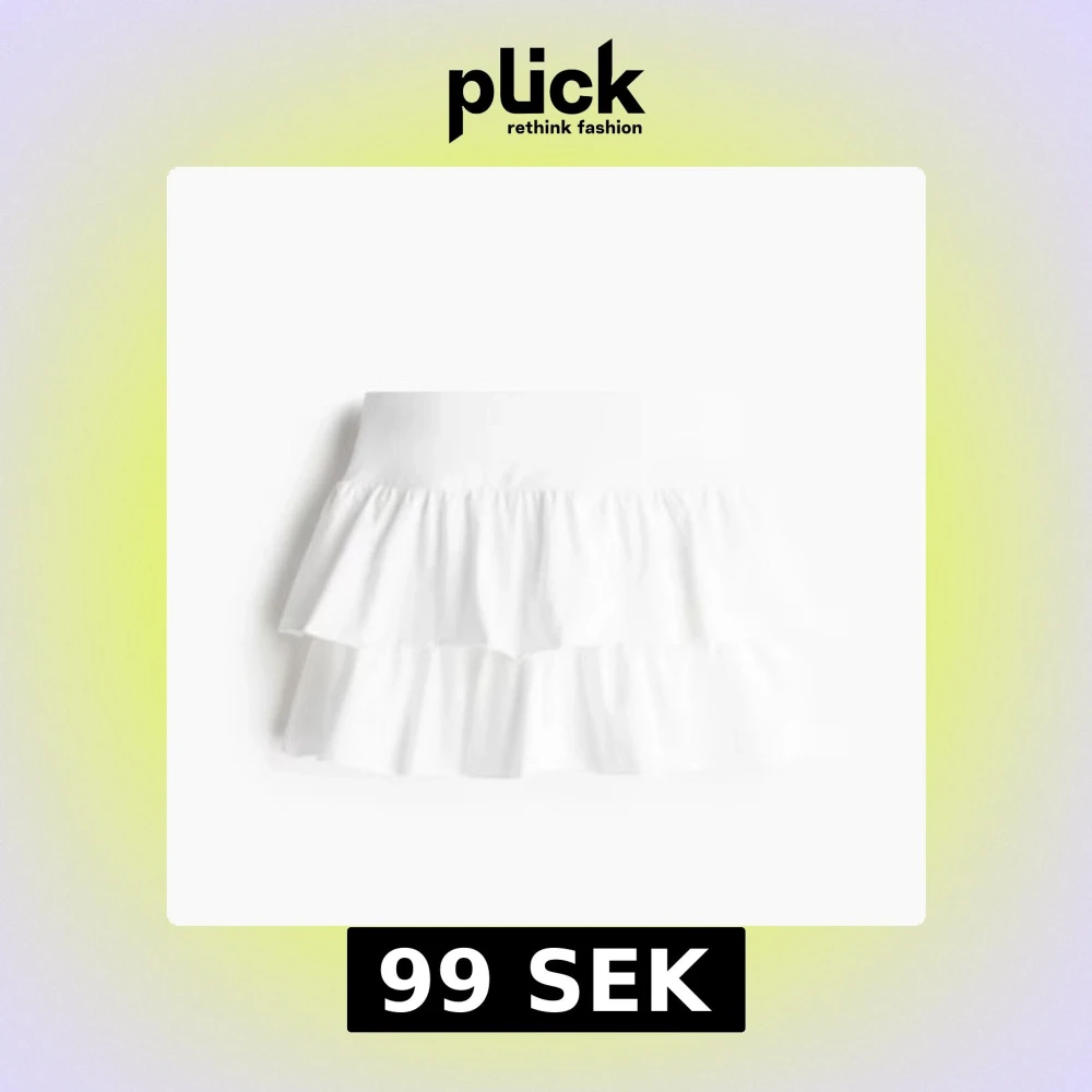 Helt ny och oanvänd kortkjol med dubbla volanger. Kjolen är i lätt, elastisk och luftig bomull, perfekt för varma dagar.