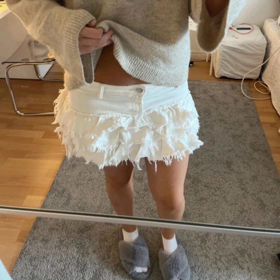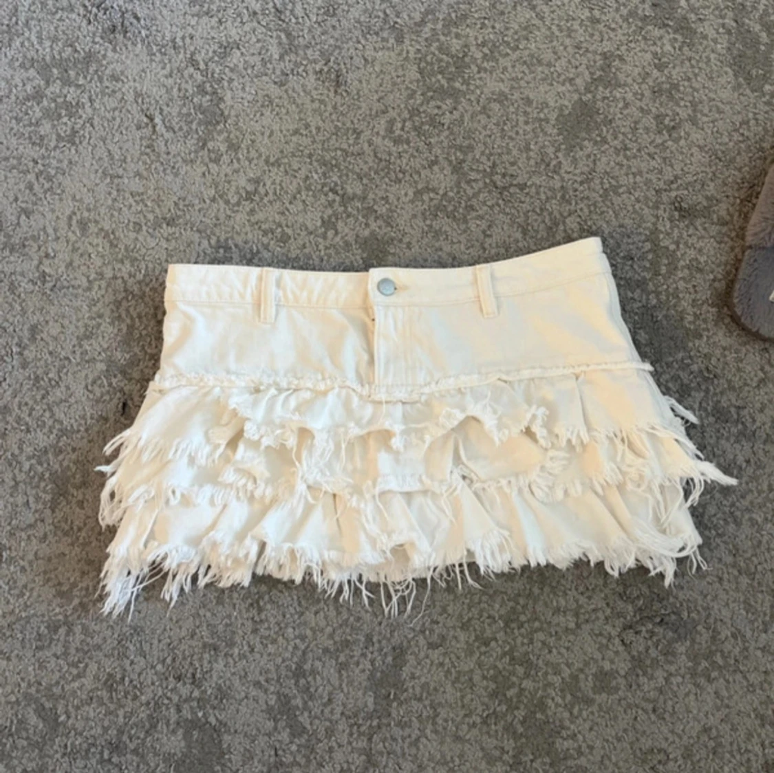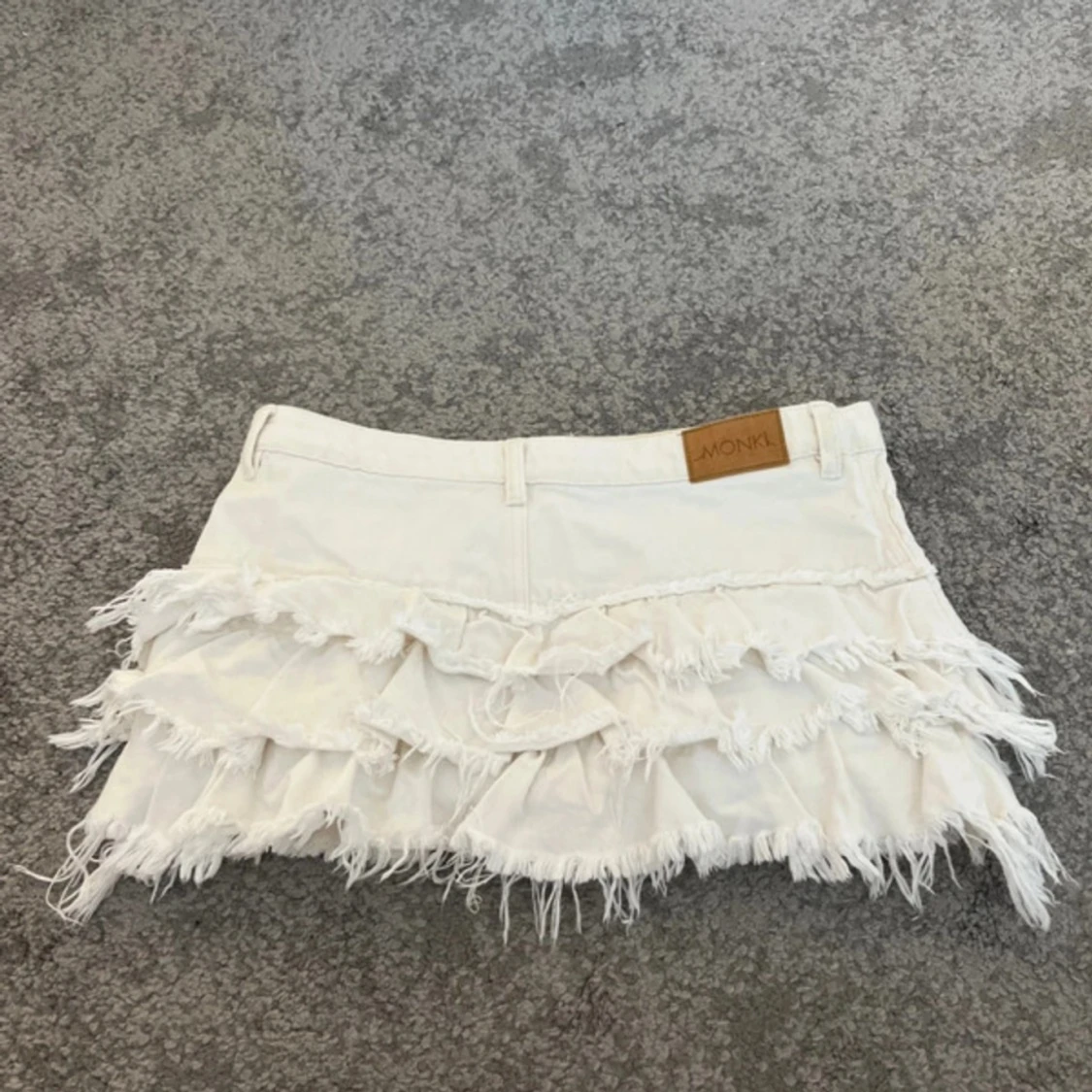 Supersöt vit kjol från Monki med flera lager volanger och fransiga kanter.