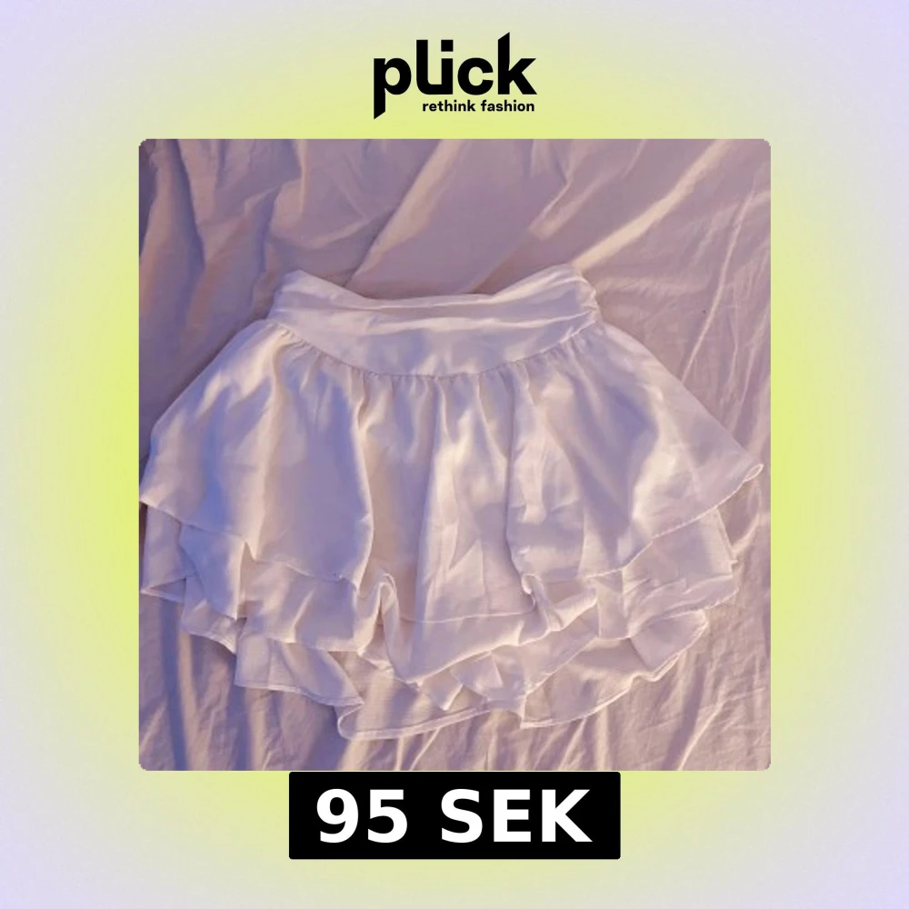 Supersöt vit kortkjol med flera lager volanger som ger en flowy och luftig känsla och inbyggda shorts. Kjolen har bred linning och är tillverkad i ett lätt tyg, perfekt för varma dagar. Passar dig som gillar en romantisk och lekfull stil.