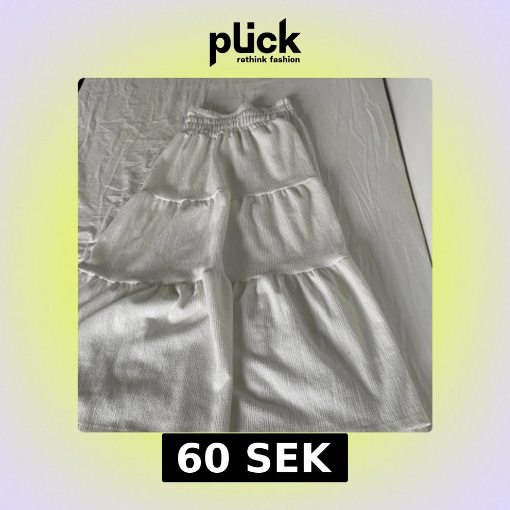 Superfin vit långkjol med flera volanger och resår i midjan. Kjolen har en luftig och flowy känsla, perfekt för varma dagar. Enkel att matcha med olika toppar för en avslappnad look.