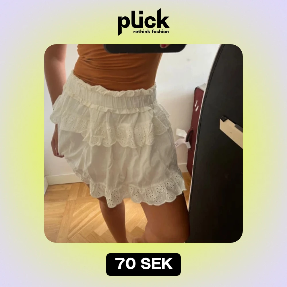 Säljer en superfin vit kjol med volanger. Den är kort och har en söt, romantisk stil med spetsdetaljer. Perfekt för sommaren eller en festlig tillställning. Kjolen är i nyskick och passar perfekt till en avslappnad eller uppklädd outfit.