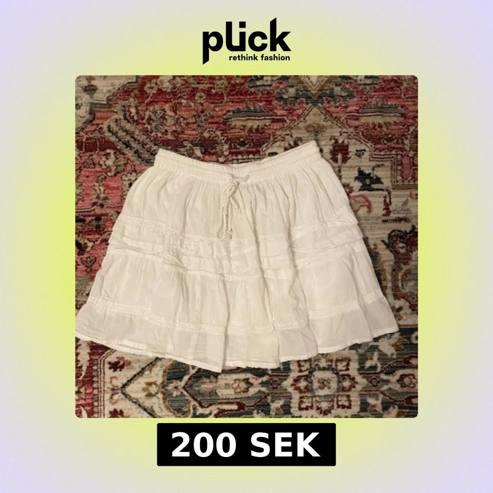 Jättefin kjol med volanger/lager och broderidetaljer. Midjan kan justeras med banden som man knyter. Passar fint till midsommaren🪽