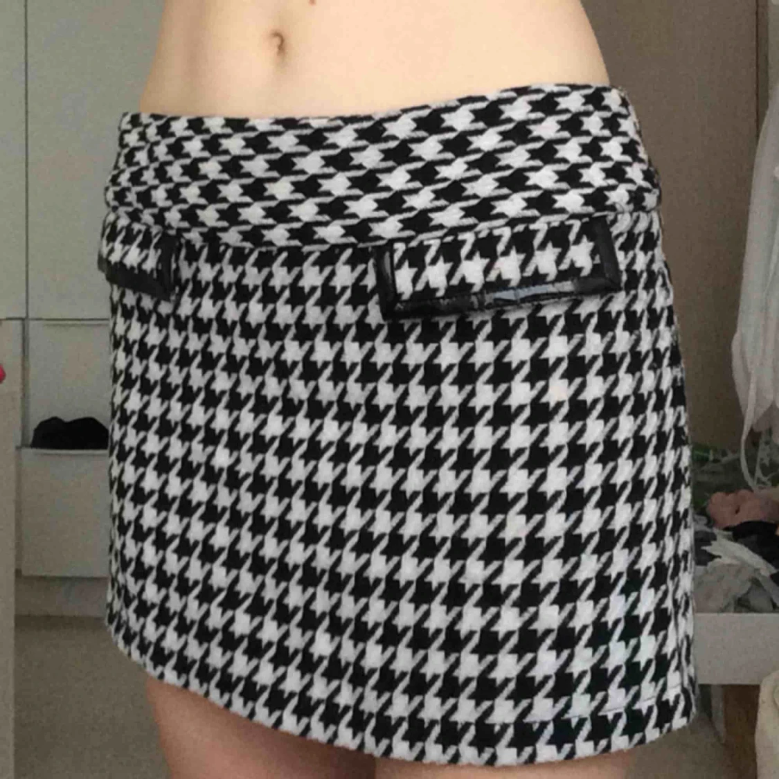 Skitsnygg kjol med hundtandsmönster🏁 vintage❣️med lackdetaljer på fickorna