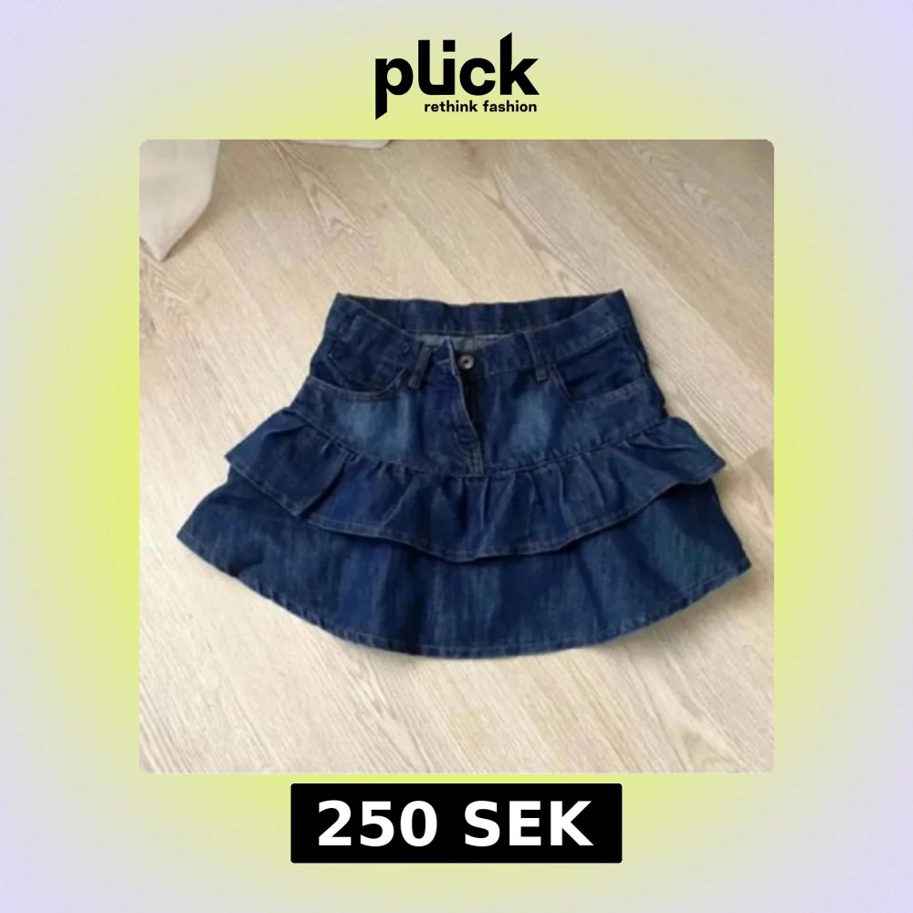 Säljer denna jeanskjolen med volanger. Köpt på plick men aldrig använd eftersom den inte passar. Midjemåtten rakt över är ca 33cm. Köparen står för frakten❤️
