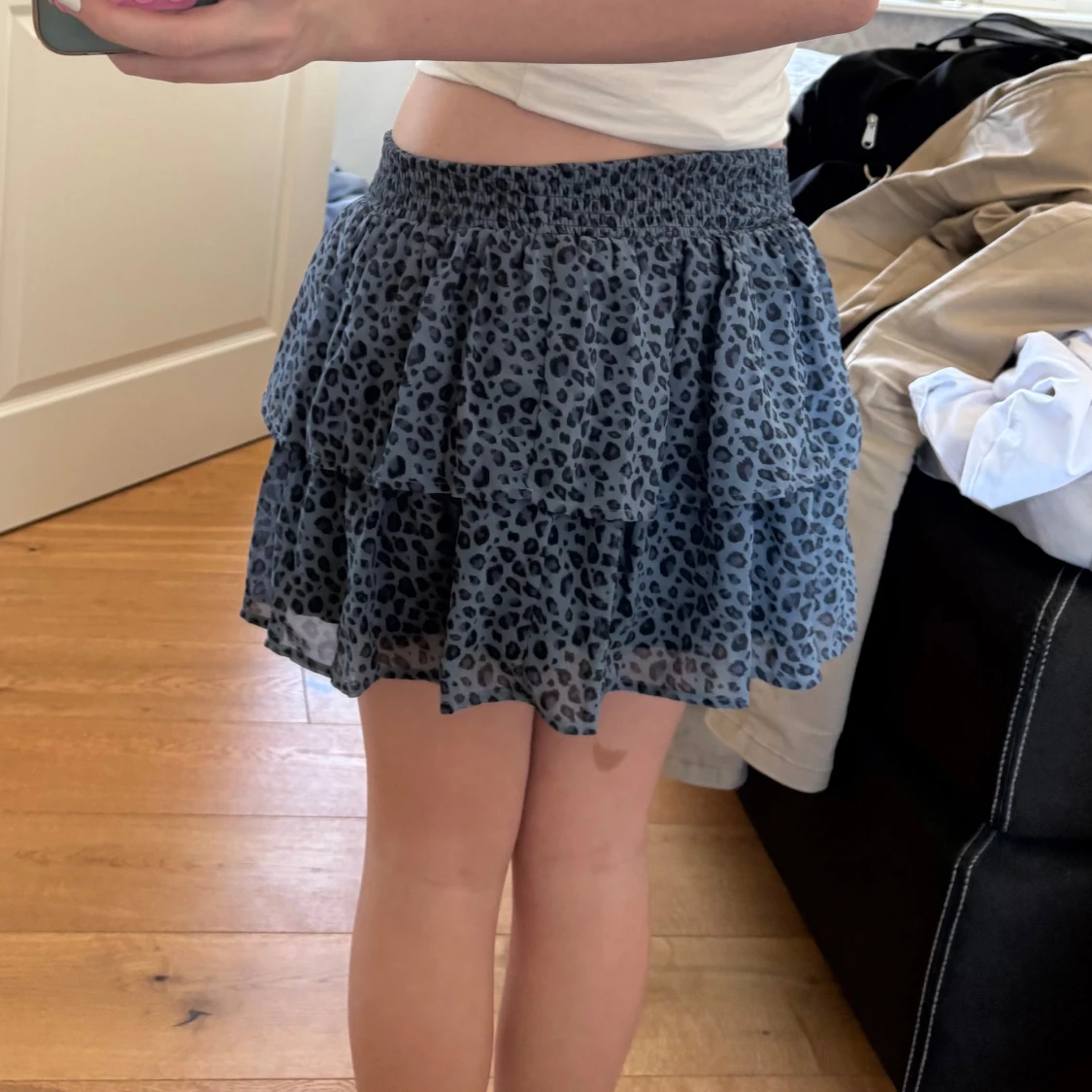 Snygg blå kjol med leopardmönster och volanger. Så bra inför sommar!💞