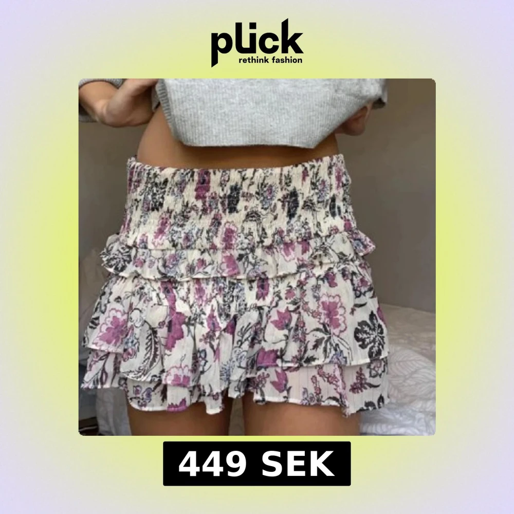 Supersöt kort kjol med blommigt mönster i rosa, svart och vitt. Kjolen är perfekt till sommarens varma dagar. Har den i både S och M