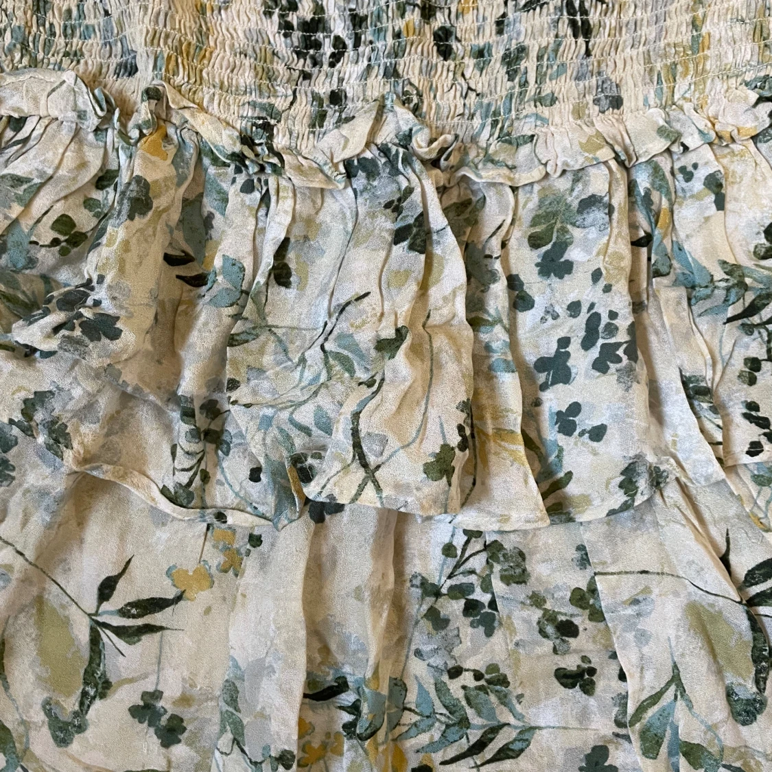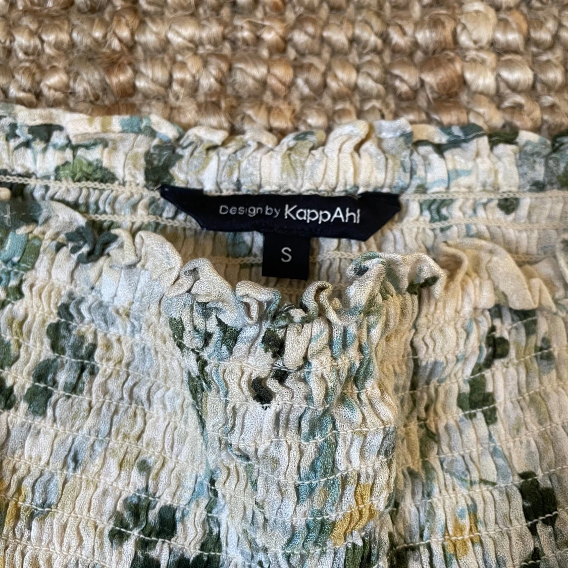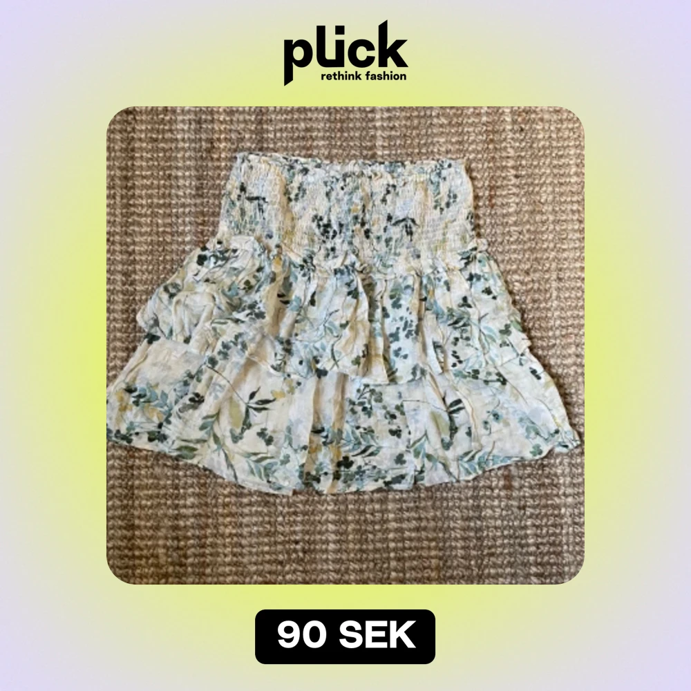 En jättefin gräddvit volangkjol från KappAhl som är i väldigt bra skick. Väldigt fina mörkgröna, ljusgröna och lite gult och blåaktiga detaljer. Dessutom skönt material och jättenajs på sommaren. Skriv för fler bilder💕💕