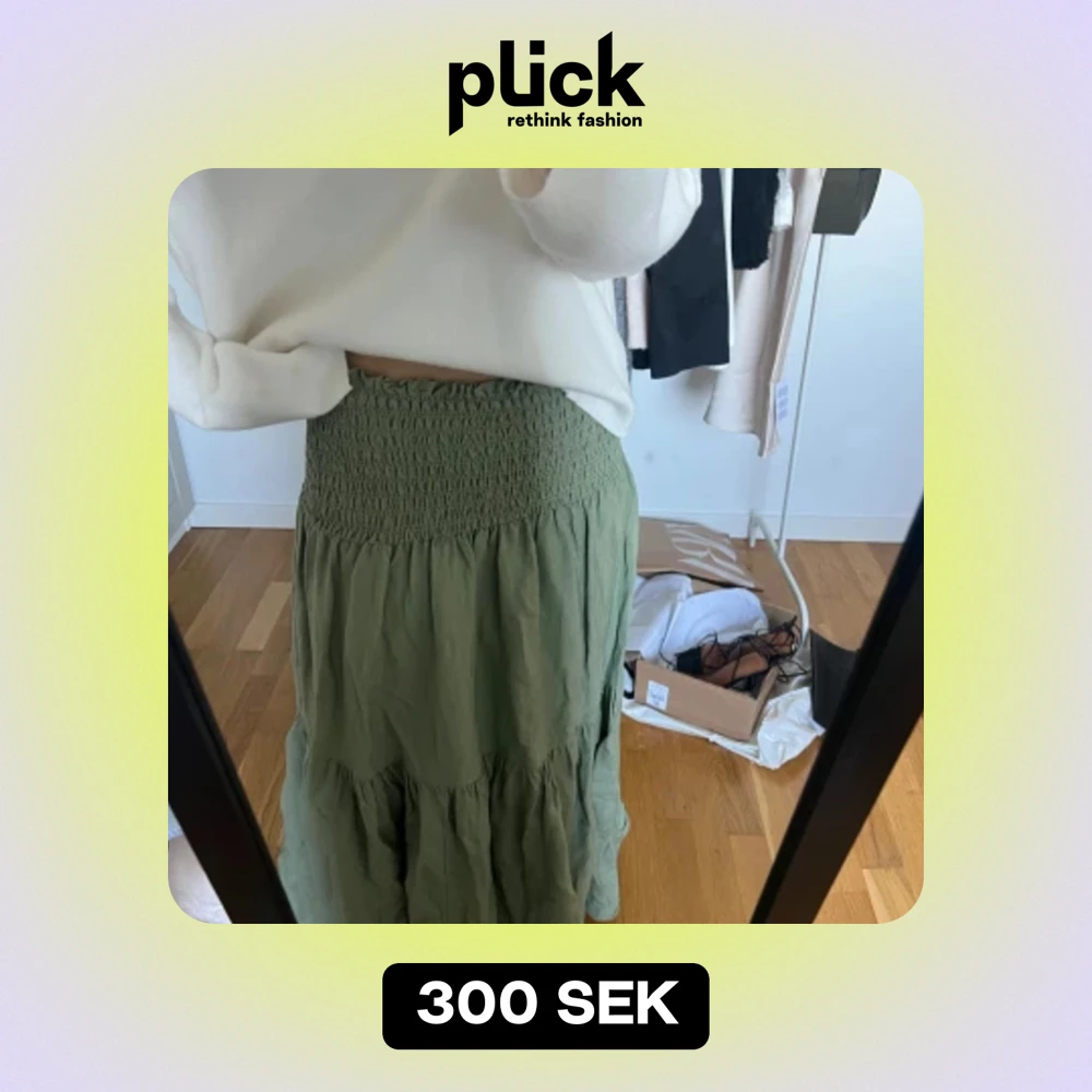 Grön lång kjol i bra skick, använd fåtal gånger, storlek M men passar XS-M.