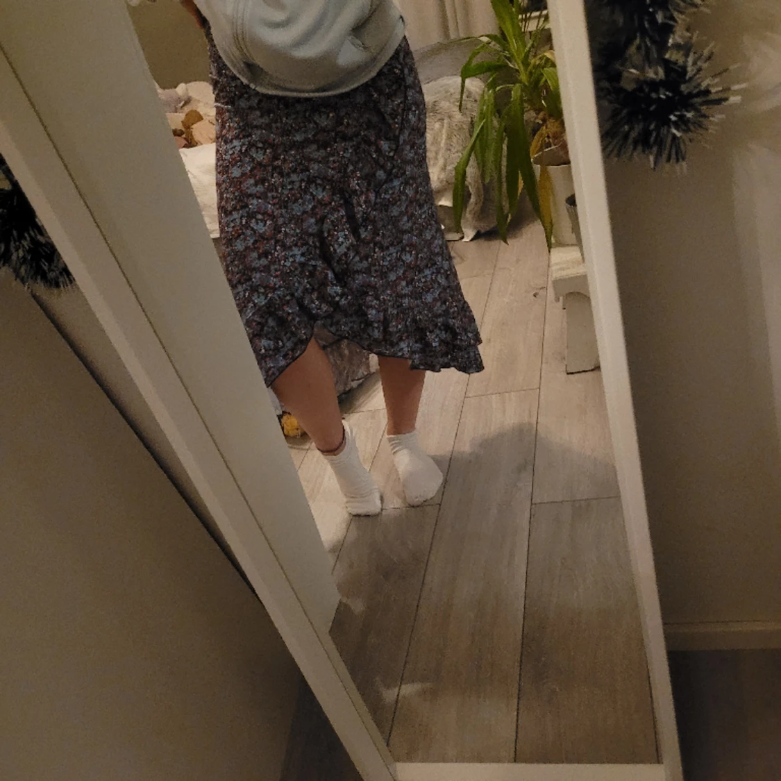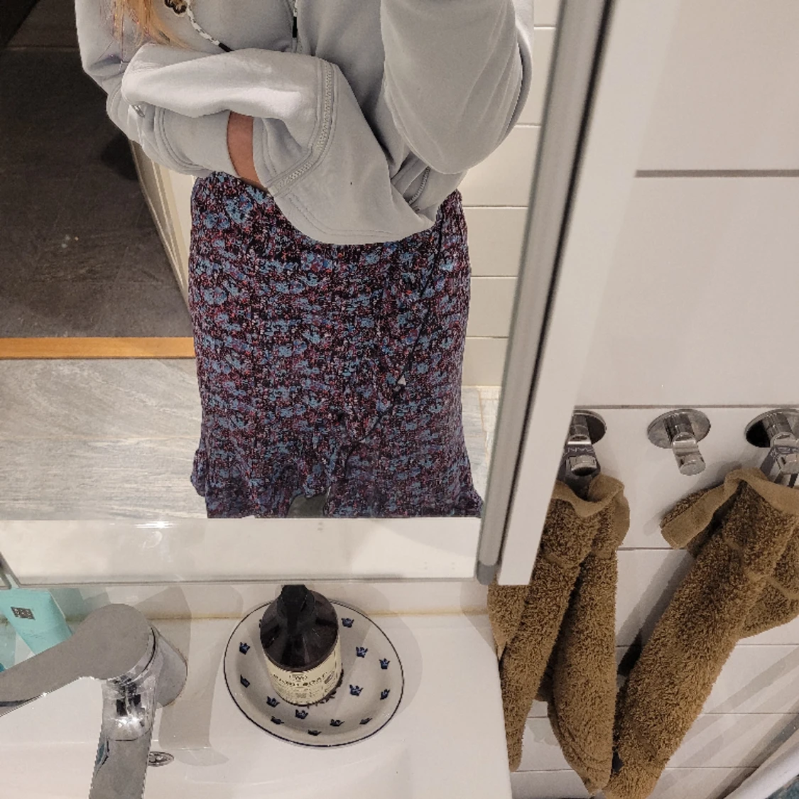 Blå/lila/svart långkjol med volang , dragkedja i sidan