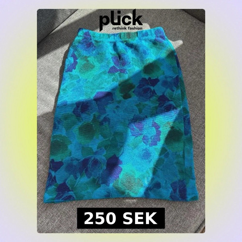 Säljer en snygg blå kjol från Ungaro med blommigt mönster i olika blå och gröna nyanser. Kjolen har en rak passform och resår i midjan för extra komfort. Perfekt för dig som vill ha en färgstark och unik look.