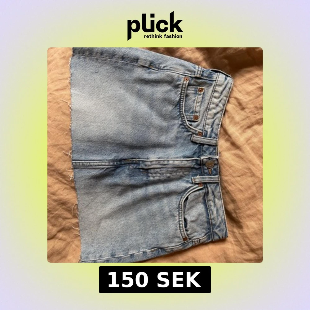 Säljer en kort ljusblå jeanskjol med klassiska fickor fram och bak, samt rå, fransig kant nedtill för en chill vibe. Kjolen har knapp och dragkedja i midjan och en liten slitning på ena bakfickan som ger extra edge.
