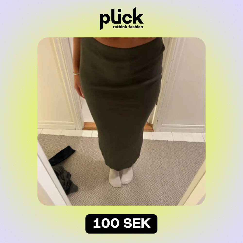 Säljer min lågmidjade ribbade kjol från weekday, går ner till fötterna på mig och är nästan 170☺️grön grå färg på den, och är aldrig använd