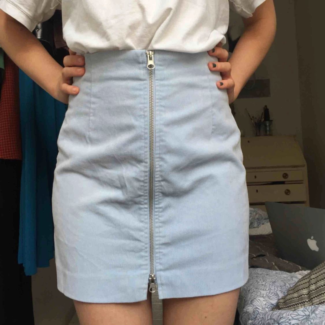 Söt ljusblå kjol i manchestertyg, knappt använd