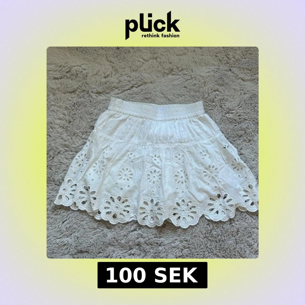 Supersöt vit kortkjol från Zara med broderade blommor och snygg scallop-kant. Kjolen har resår i midjan för skön passform och är gjord i mjuk bomull. Perfekt för varma dagar och ger en fräsch och somrig vibe. Passar xs, jätte bra skick! Finns inte att köpa längre