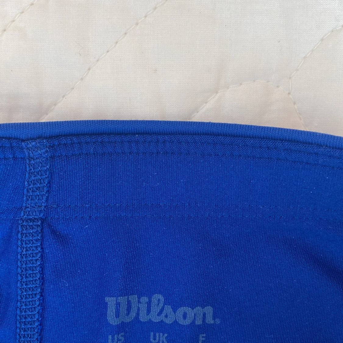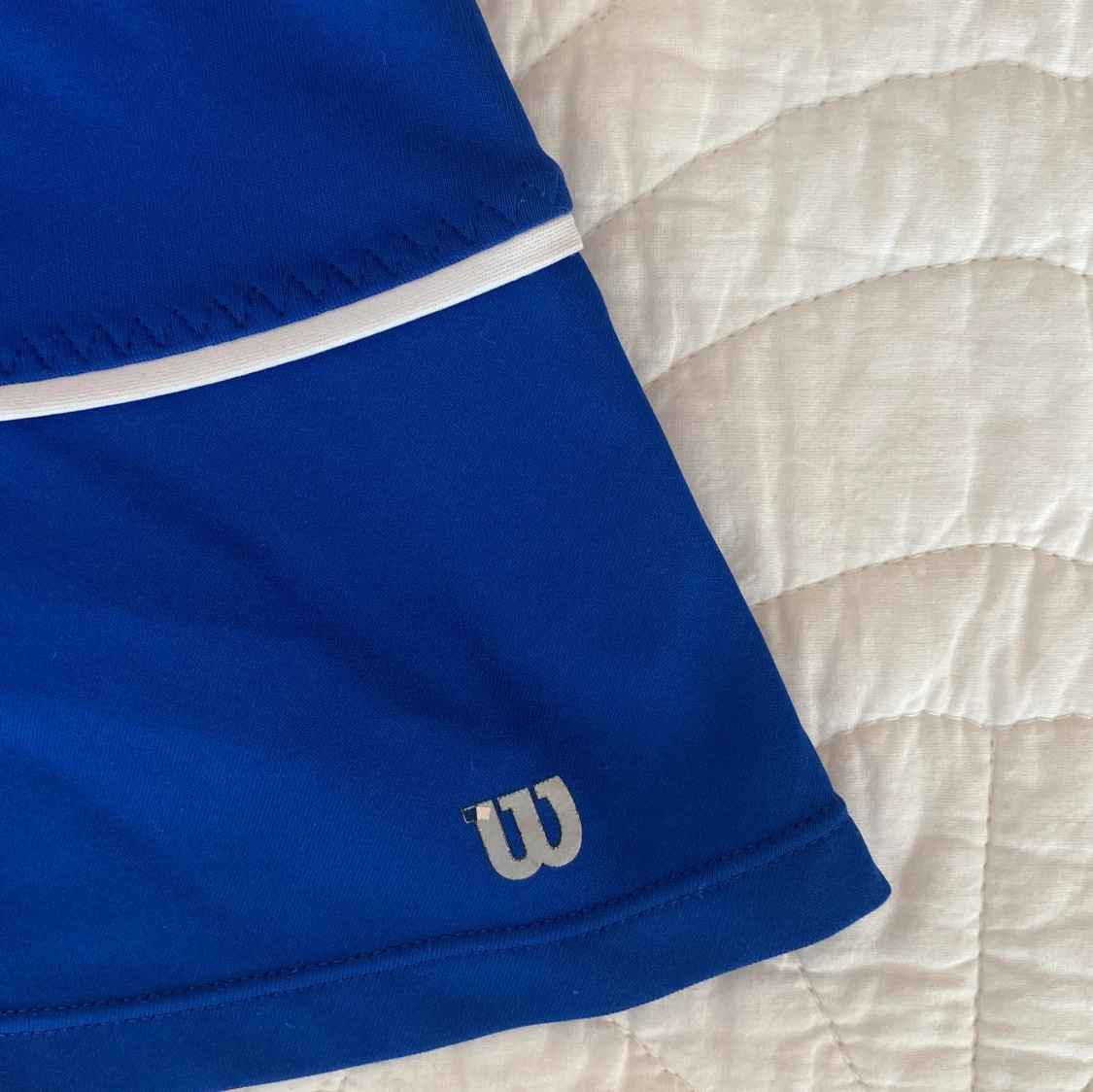 Sportig blå mini skirt från Wilson med vit detalj och inbyggda shorts under. Kjolen är tillverkad i ett stretchigt syntetmaterial som passar perfekt för tennis eller träning eller om man bara vill ha en gullig mini kjol. Enkel och stilren design med diskret Wilson-logga framtill.