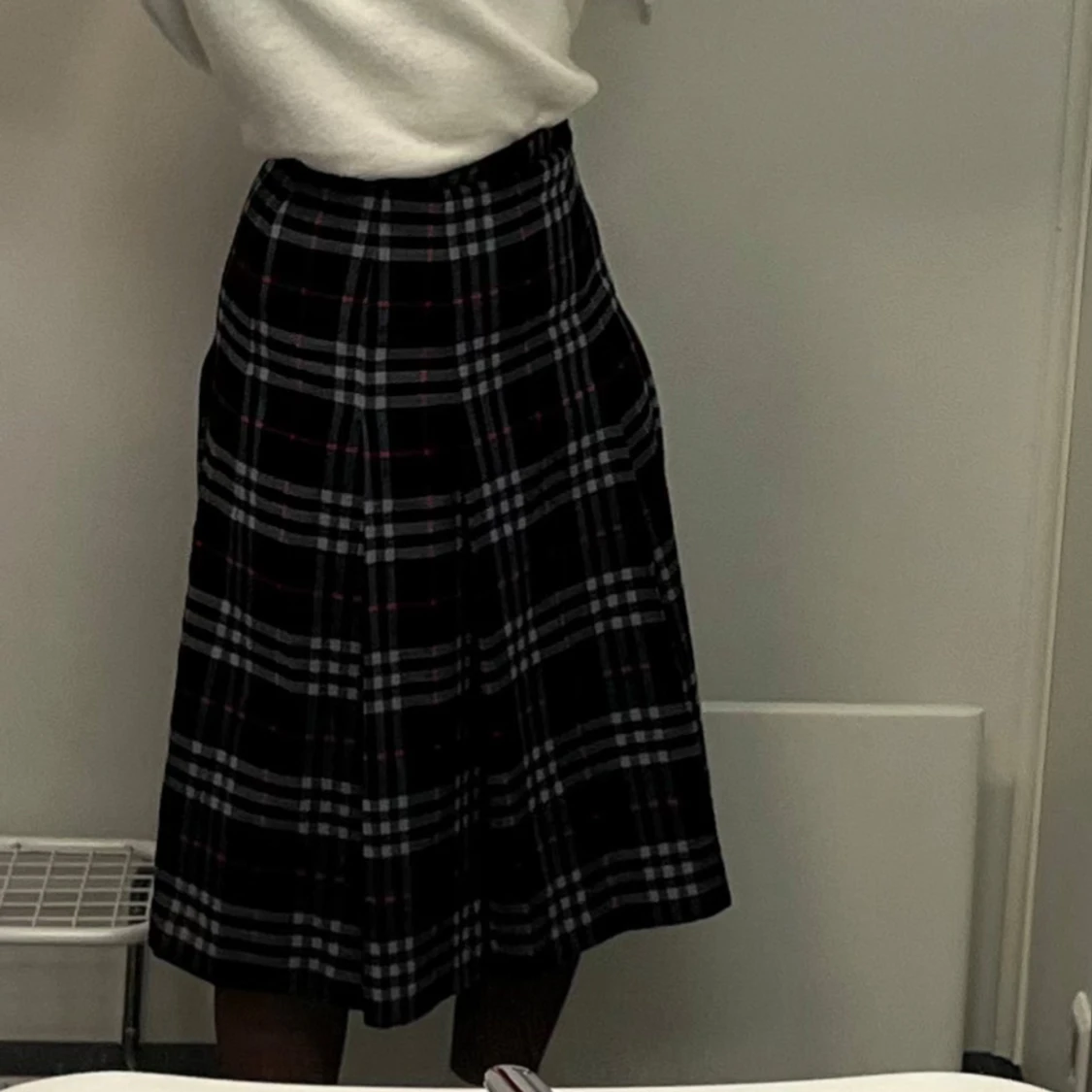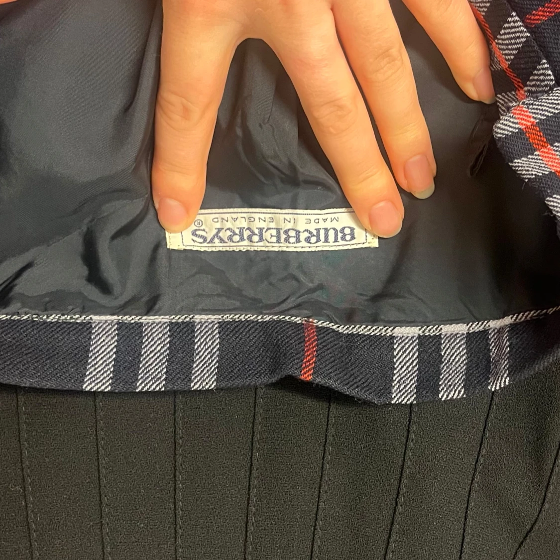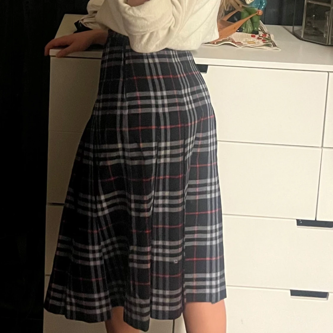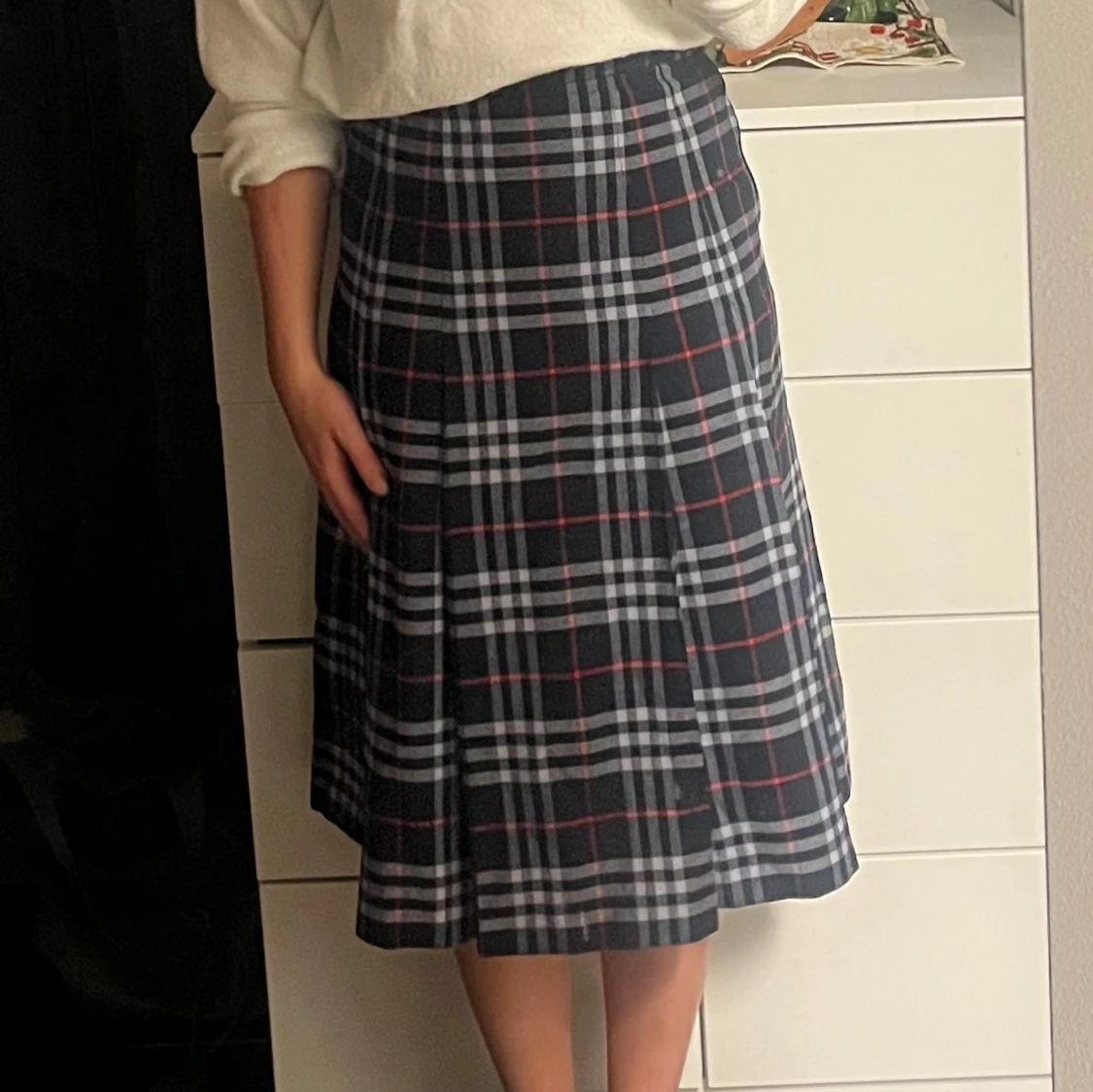 Snygg rutig kjol från Burberry i mörkblått med röda och vita rutor. Kjolen har en klassisk design och är perfekt för en stilren look. Den är knälång och har en bekväm passform. Tillverkad i England med 100% ull.💕i otroligt fint skick