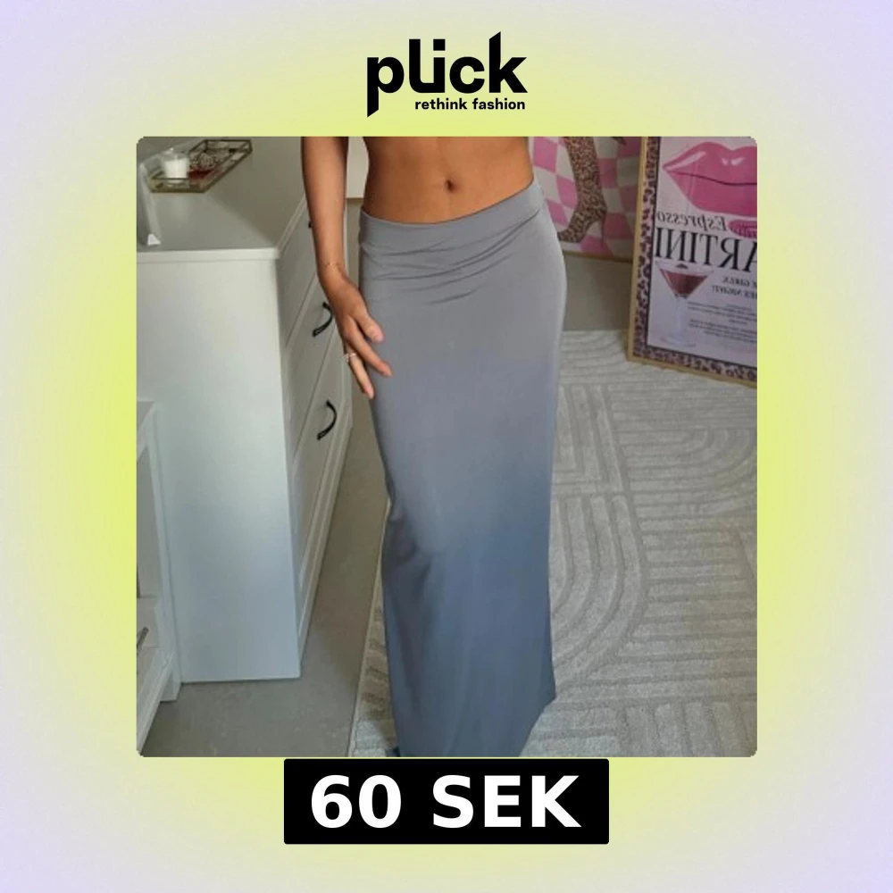 Säljer en stilren grå långkjol med hög midja och figurnära passform. Kjolen är i ett mjukt och stretchigt material som ger en snygg siluett. Perfekt att styla med crop top eller oversized tröja för en trendig look.