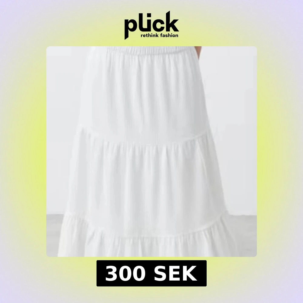 Säljer en vit långkjol med volanger och fina spetsdetaljer mellan de olika lagren. Köpt i Italien.😍 Kjolen har en elastisk midja och är gjord i ett lätt, luftigt tyg som ger en flowy känsla. Perfekt för dig som gillar romantisk och bohemisk stil.