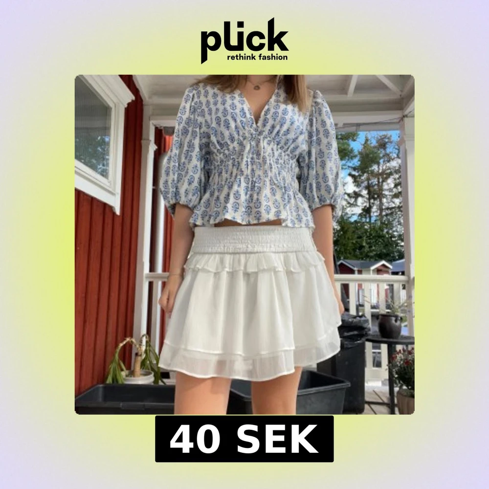 Supersöt vit kortkjol med bred smock i midjan och dubbla lager volanger. Kjolen är lätt och luftig med transparent yttertyg och mjuk känsla. Perfekt för dig som gillar romantisk och feminin stil. Passar dig som vill ha en flowy och trendig look.