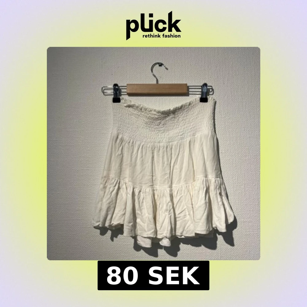 Söt vit kjol med smock upptill och volang nertill. Kjolen är kort och har en luftig känsla, perfekt för varma dagar. Passar till många olika stilar och är lätt att matcha med olika toppar.