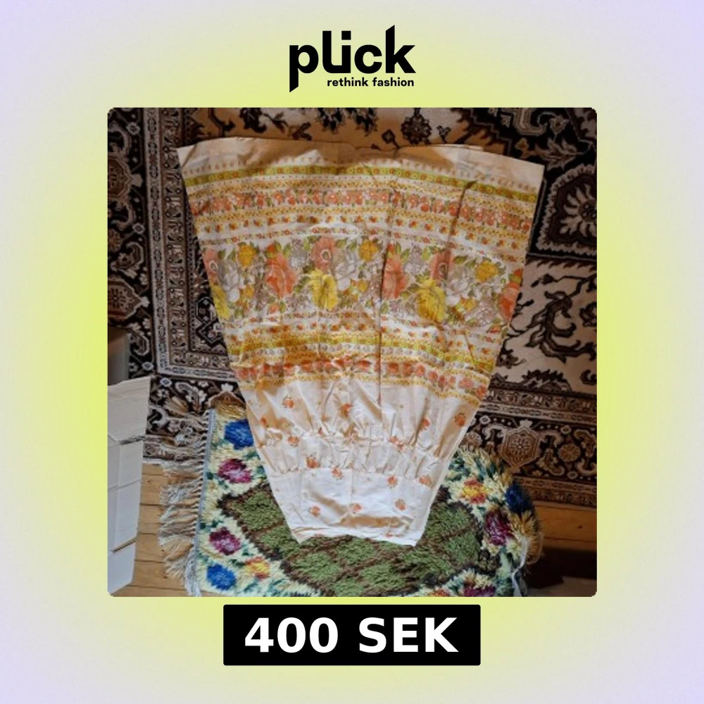 Säljer en vintageinspirerad kjol med blommigt mönster i orange, gul och vit. Kjolen har en A-linjeform och resår i midjan. Perfekt för dig som gillar retrostil och färgglada plagg.