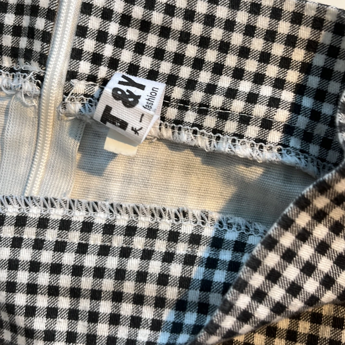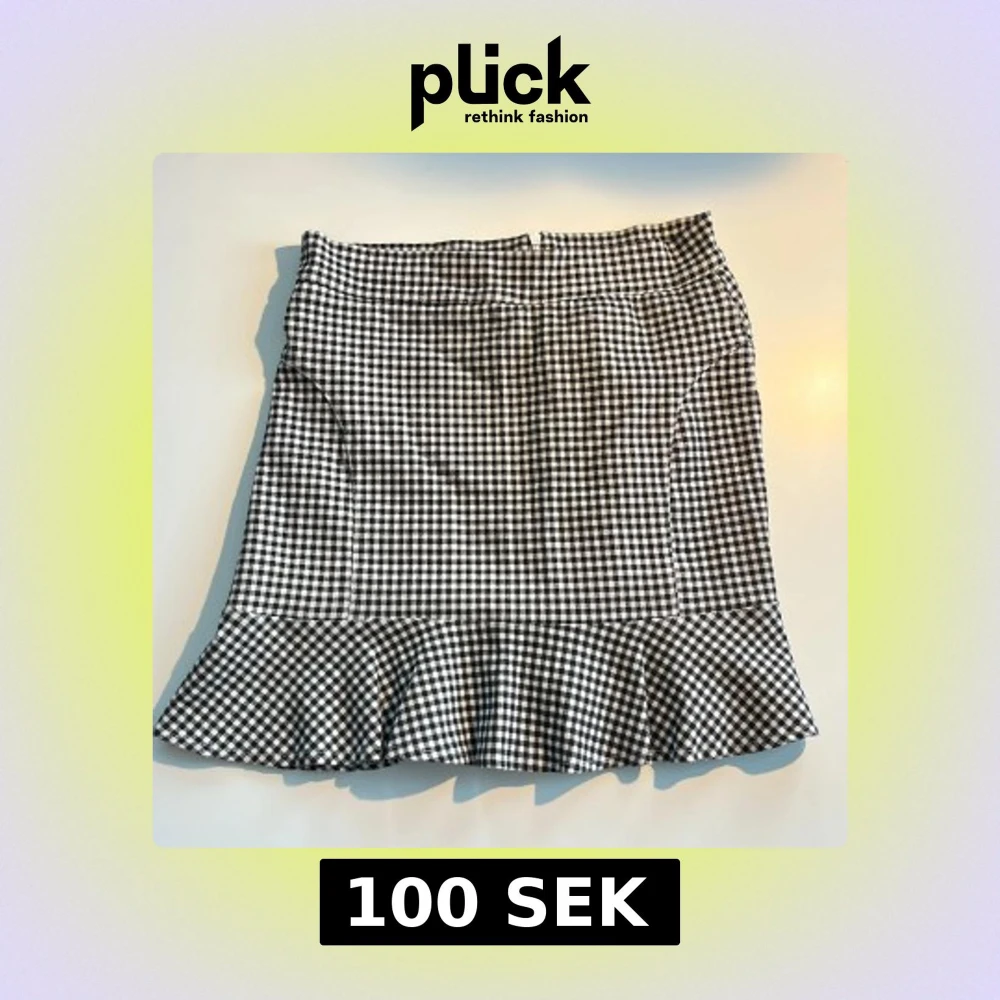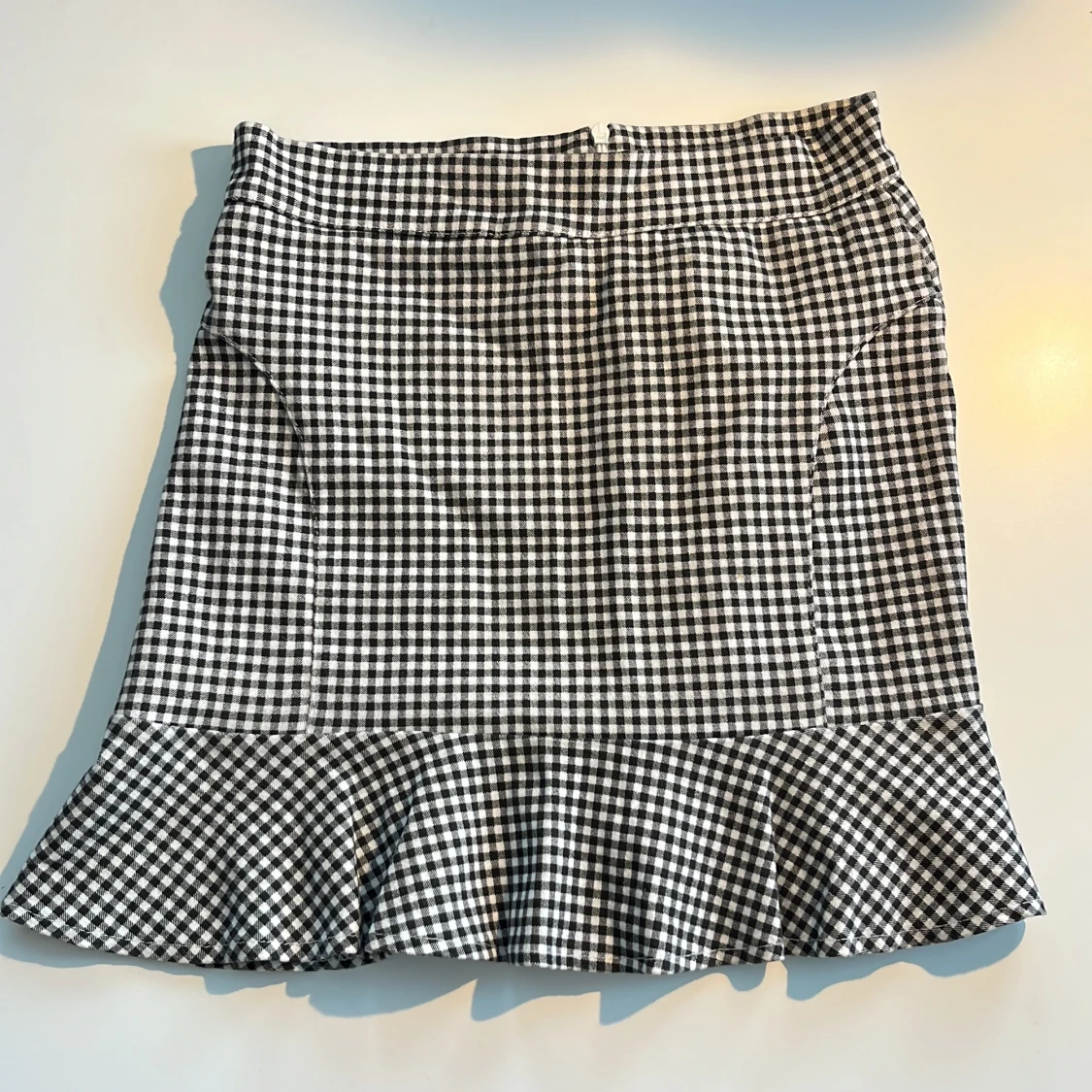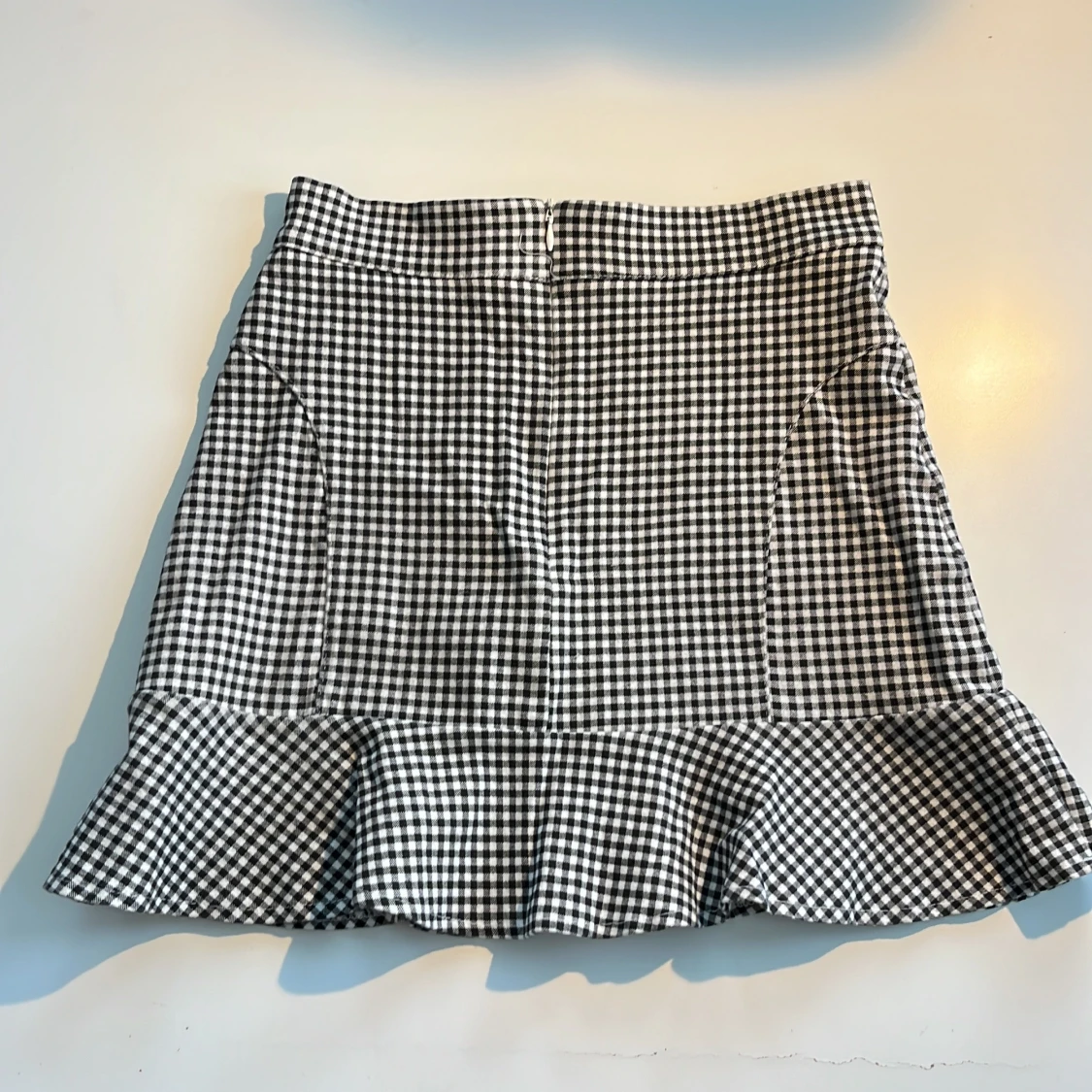 Söt kort kjol i svartvitt rutigt mönster från T&Y Fashion. Kjolen har en figurnära passform med volangkant nertill. Köpt från Yesstyle. Liten i storlek, trots S så kan den upplevas som XS pga tajt midja.