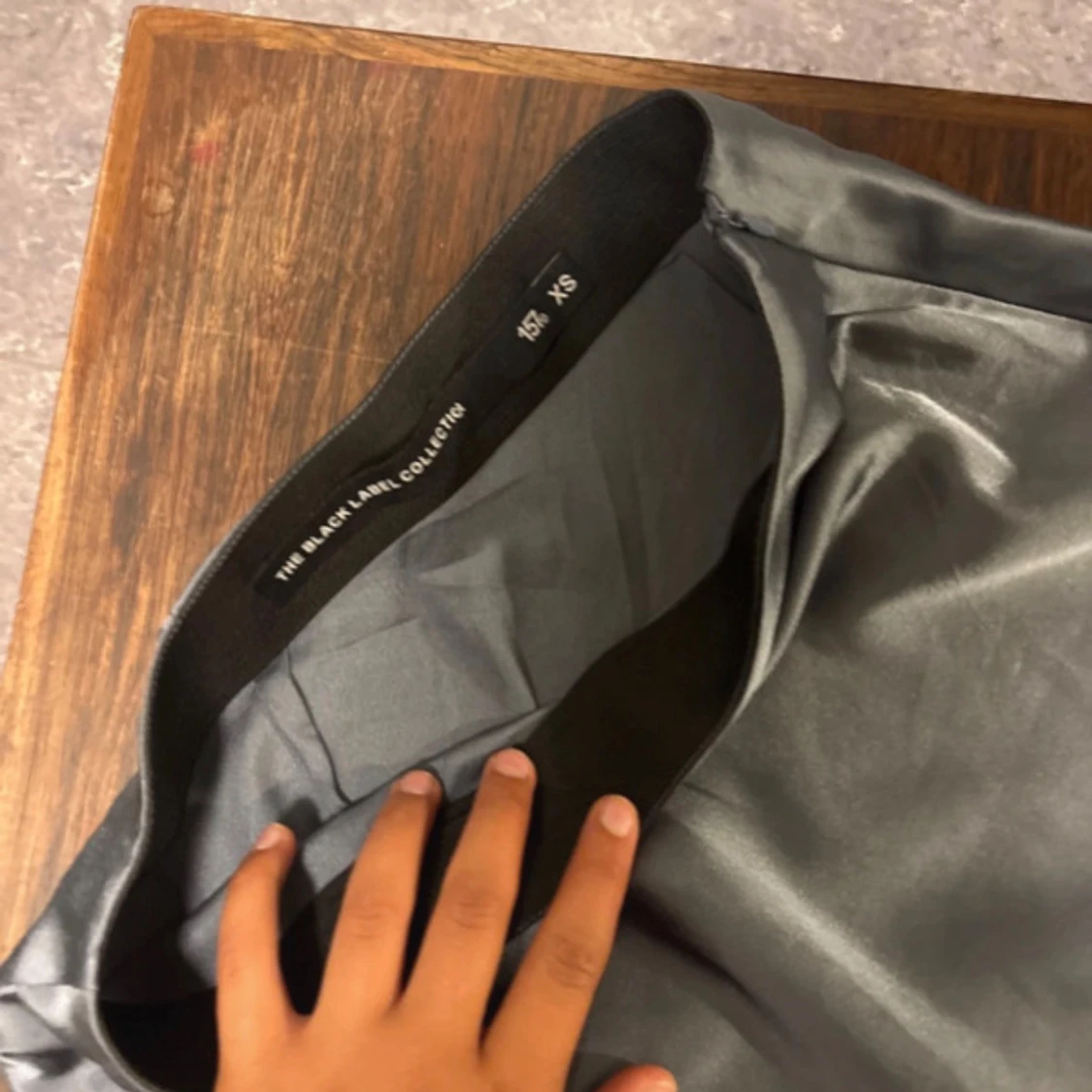 Snygg grå långkjol från The Black Label Collection i storlek XS. Kjolen har en slät och glansig satinfinish som ger en lyxig känsla. Perfekt för dig som gillar stilrena och eleganta plagg med lite extra shine.