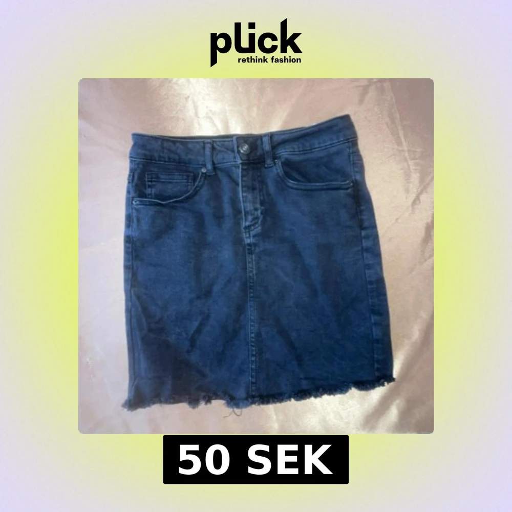 Svart jeanskjol med rå kant och klassisk femficksdesign. Perfekt för en avslappnad stil. Kjolen har en knapp och dragkedja framtill.