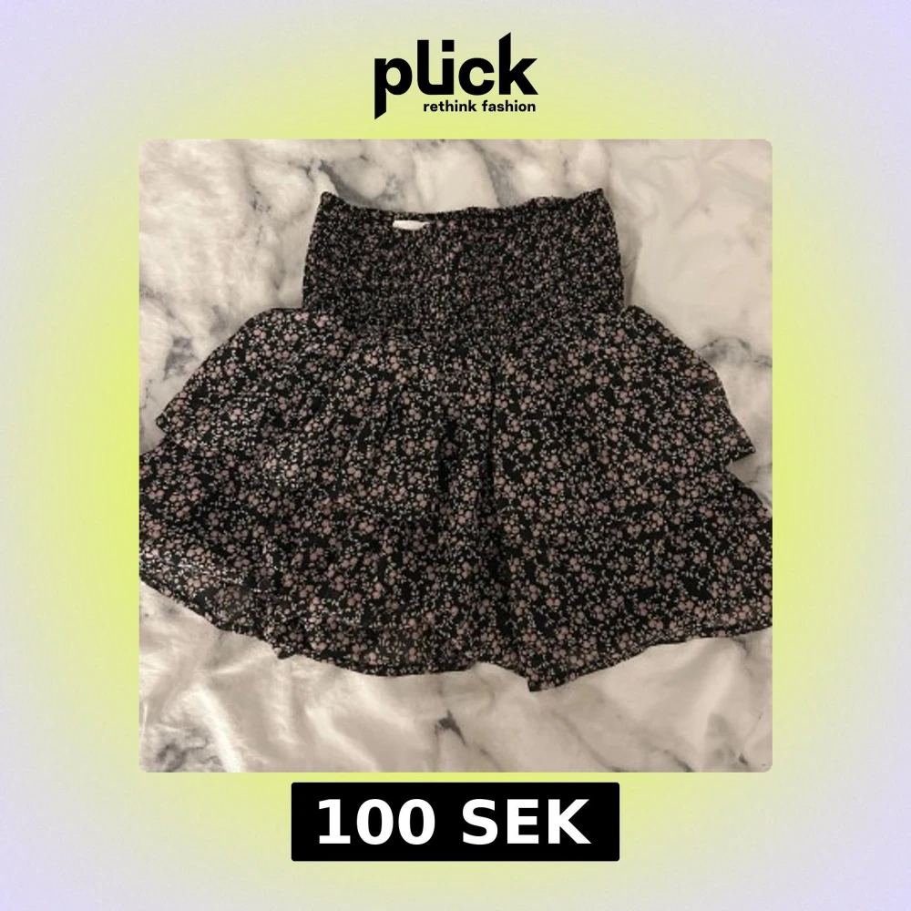 Söt kortkjol med blommigt mönster i rosa och svart. Storlek 146 men passar xs/s där av att den är elastisk! Skriv för fler frågor eller bilder!💕