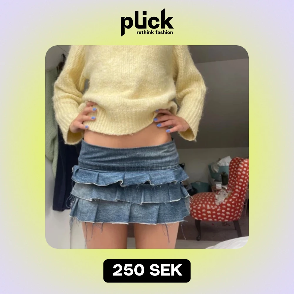 Lånade bilder!!! Säljer denna jätte snygga volang kjol som är gjord av jeans, tjejen jag köpte av sydde den själv💞midje måttet är 38 men går att spänna ut i midjan, längd 24,5