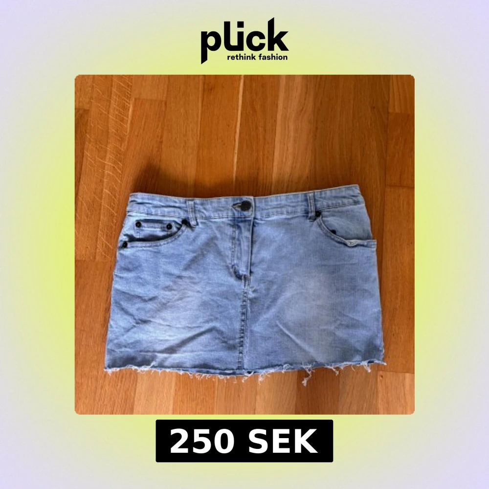 Ljusblå jeanskjol med rå kant nertill och klassiska fem fickor. Kjolen har knapp och dragkedja framtill samt dekorativa sömmar på bakfickorna. Perfekt för en avslappnad stil.