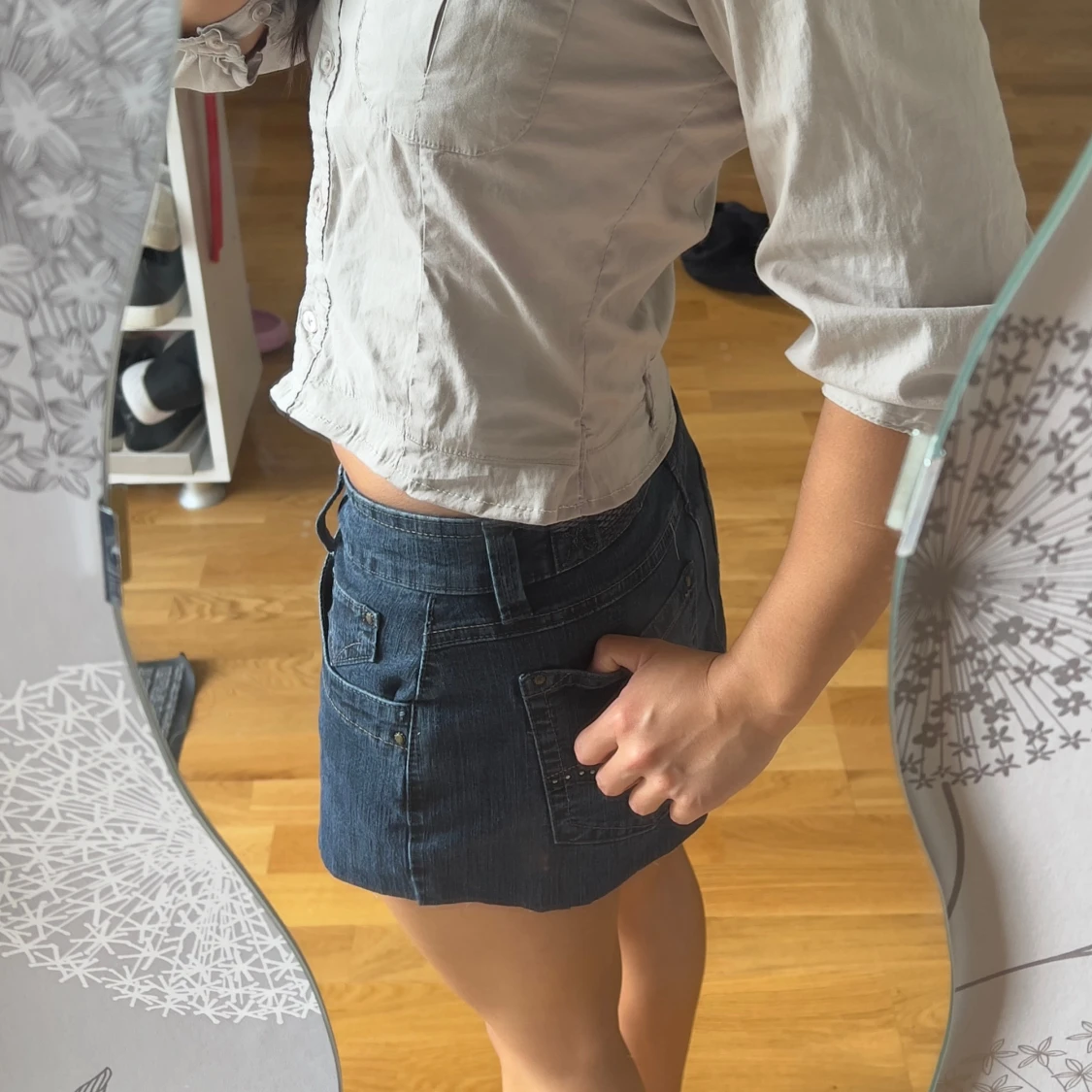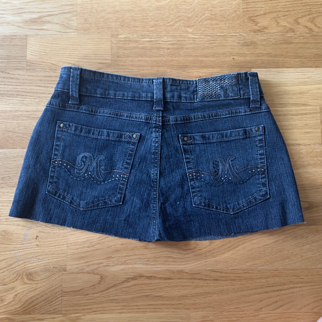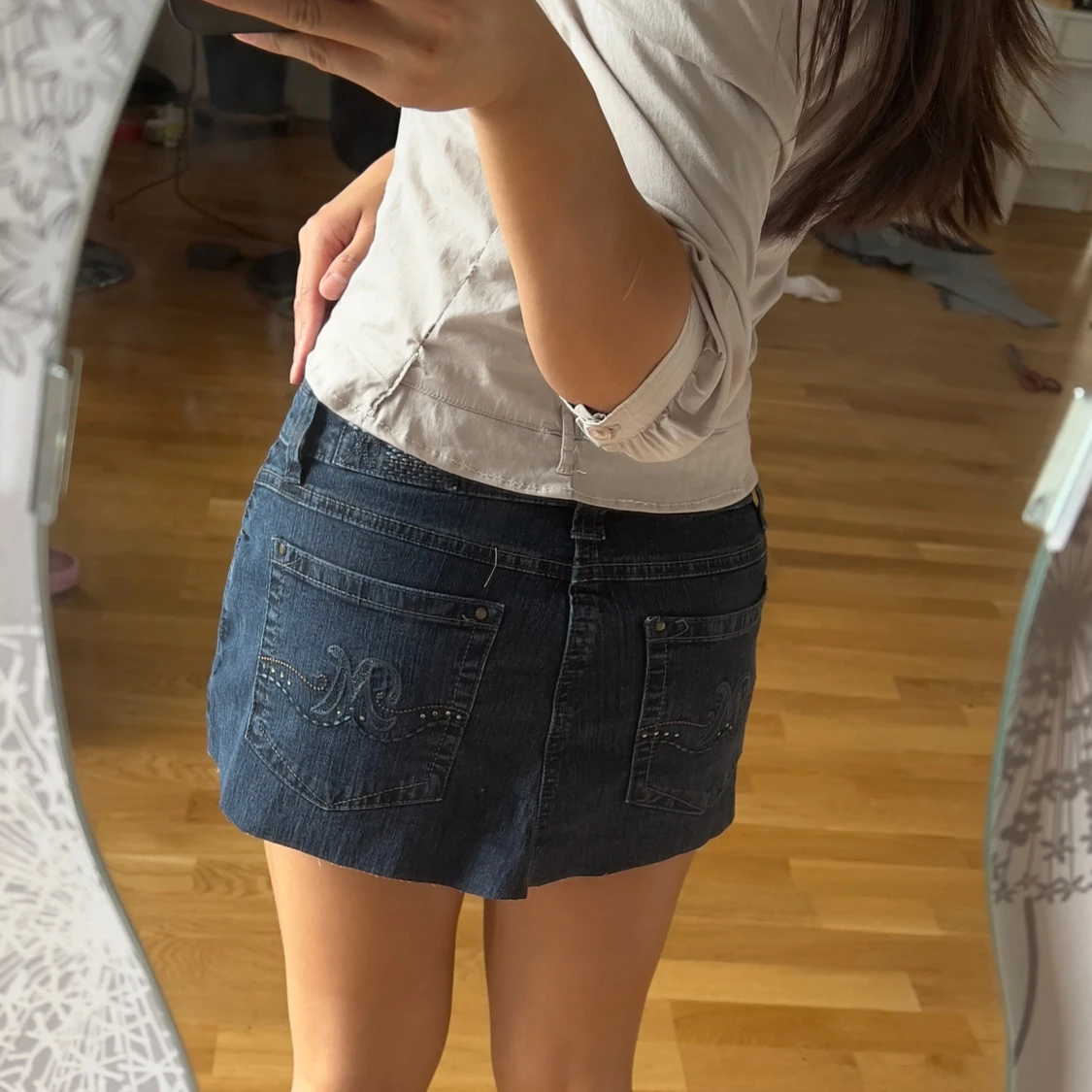Snygg mörkblå jeanskjol med klassiska fickor fram och bak, samt coola detaljer på bakfickorna. Kjolen är kort och har bälteshällor, perfekt till en avslappnad och trendig look. Passformen är normal och materialet är robust denim.