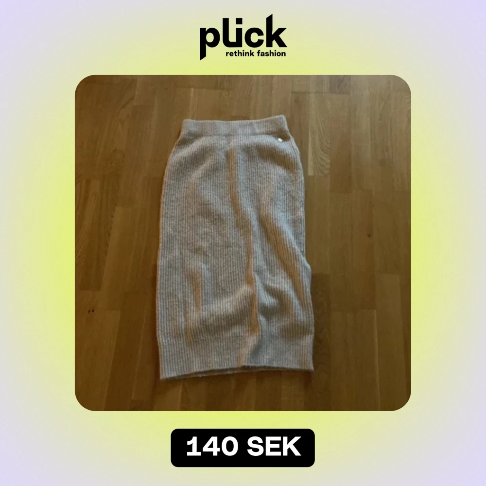 Säljer en superfin grå ribbad kjol. Kjolen är i en längre modell och har en bekväm passform. Den är gjord i ett mjukt material. Perfekt att matcha med en snygg topp eller stickad tröja!