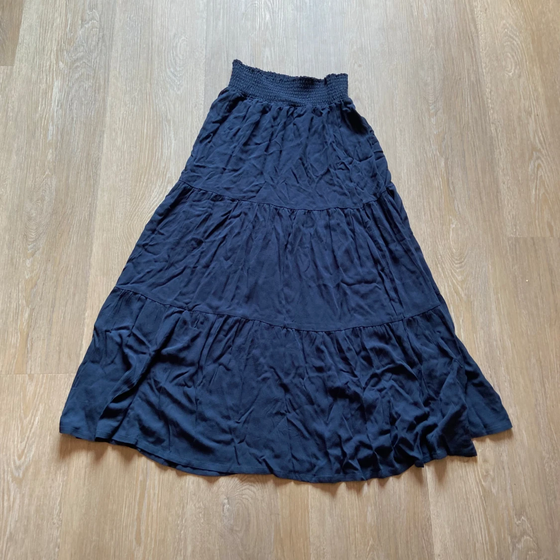 Säljer en mörkblå långkjol från lager 157 i storlek XS. Kjolen har en smockad midja och flera volanger. Jag gick in och kollade på lager 157 och det verkar som att kjolen inte finns kvar i mörkblått där. Jag säljer den för 100kr men nypris är 200kr.