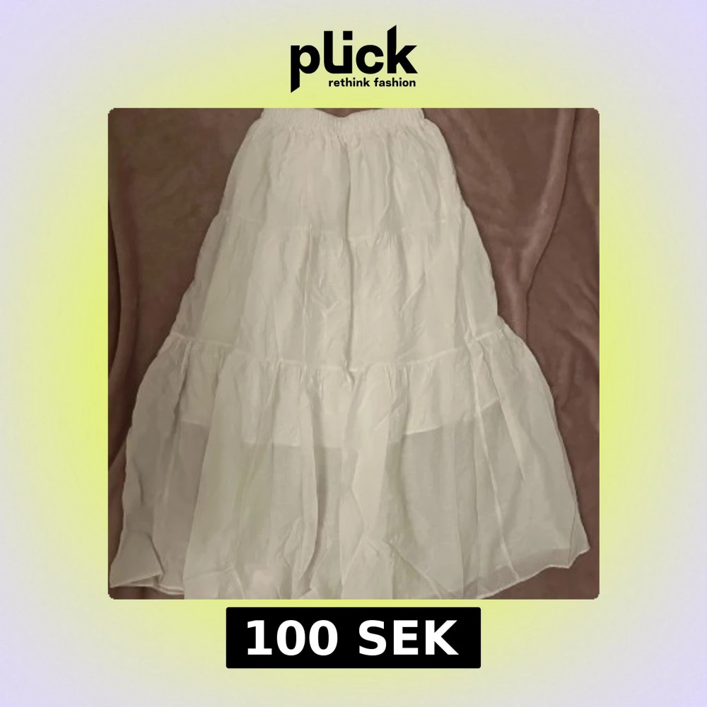 Säljer en superfin vit långkjol med flera volanger och elastisk midja. Den är luftig och lätt och passar till somriga/våriga tillfällen. Bra skick!!