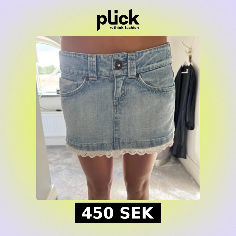 Supersöt ljusblå jeanskjol med en snygg spetskant längst ner.