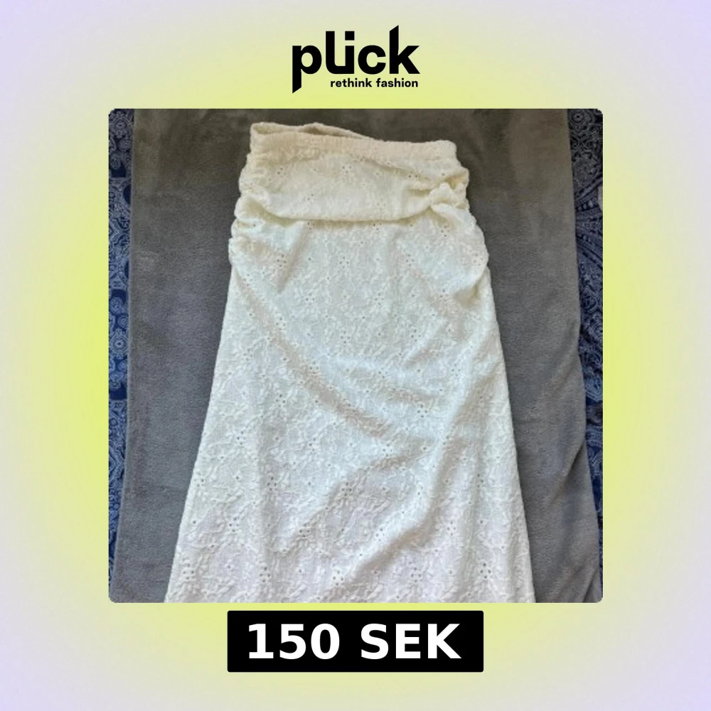 Superfin vit långkjol med broderade spetsdetaljer och blommigt mönster. Kjolen har en mjuk och luftig känsla, perfekt för varma dagar. Resår i midjan för skön passform och romantisk look.