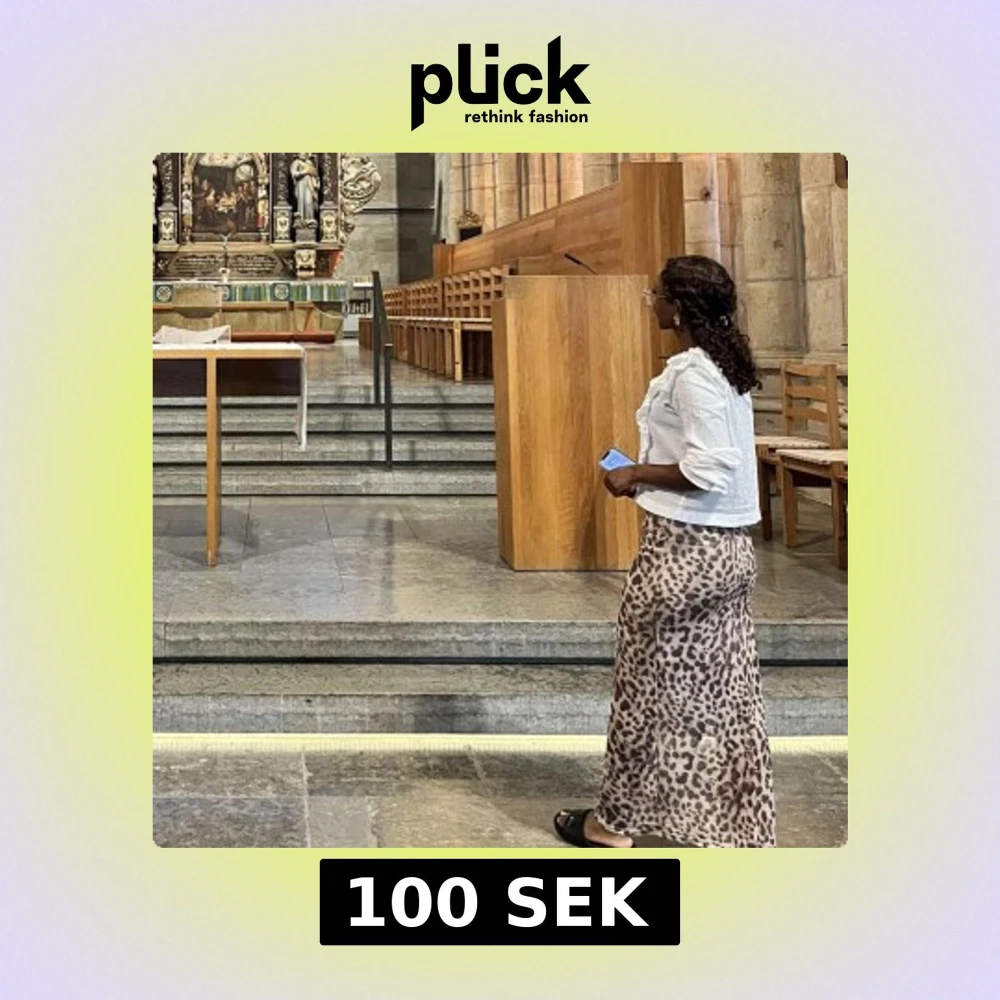 Snygg långkjol med leopardmönster i beige och bruna toner. Kjolen har en mjuk, glansig satinfinish som ger ett lyxigt intryck och faller snyggt längs benen. Perfekt för dig som vill sticka ut med ett trendigt djurmönster. Användes endast denna dagen