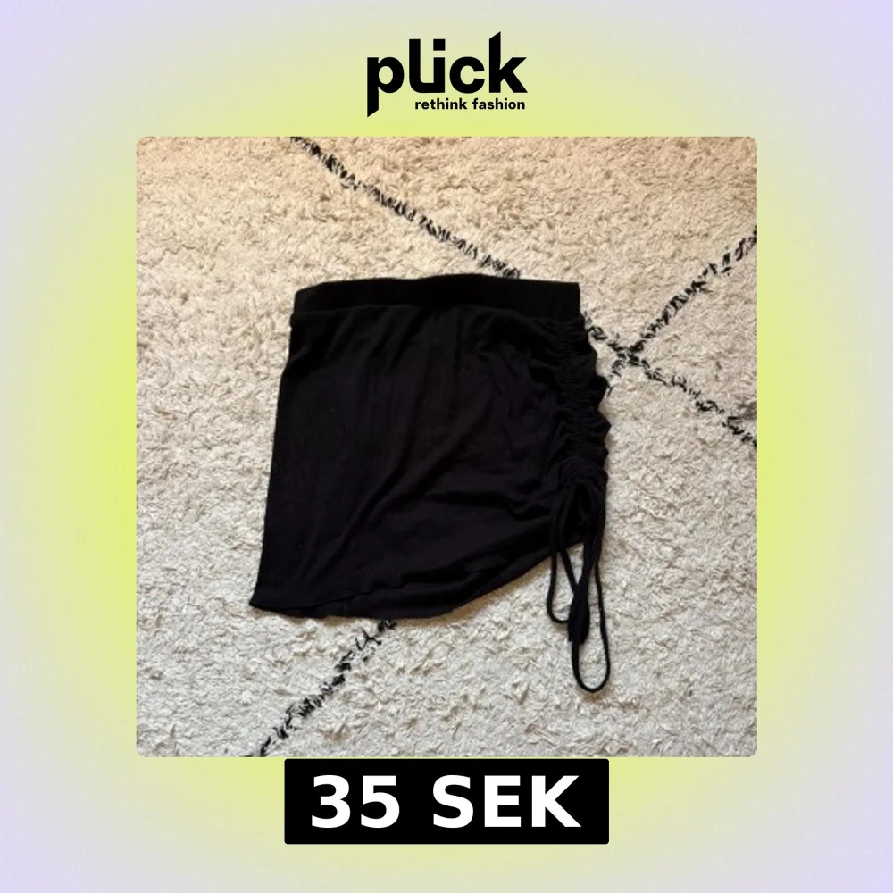 Säljer en svart kortkjol med snygg snörning på sidan som ger en cool, asymmetrisk look. Kjolen är ribbad och har en elastisk midja för skön passform. Perfekt för dig som gillar stilrena plagg med en twist.